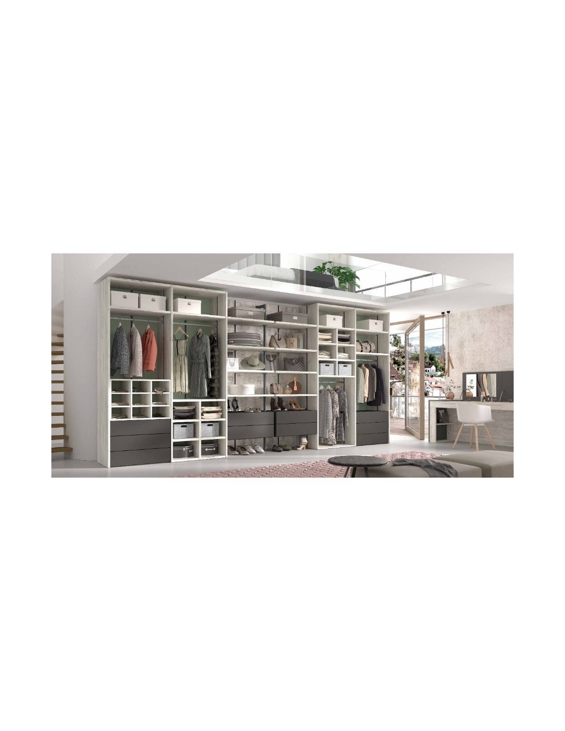 Le diseñamos su vestidor a medida haciéndole un dibujo en 3D para que pueda ver cómo quedaría montado y poder realizar los cambios que desee sobre el diseño y hacer pruebas de color y accesorios.