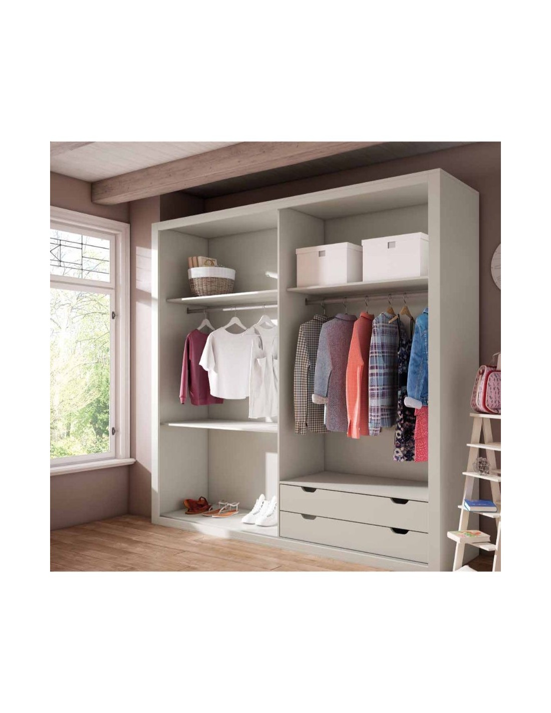 Armario a medida en madera con frentes de cruceta cajoneras interiores y diseño personalizado (8)