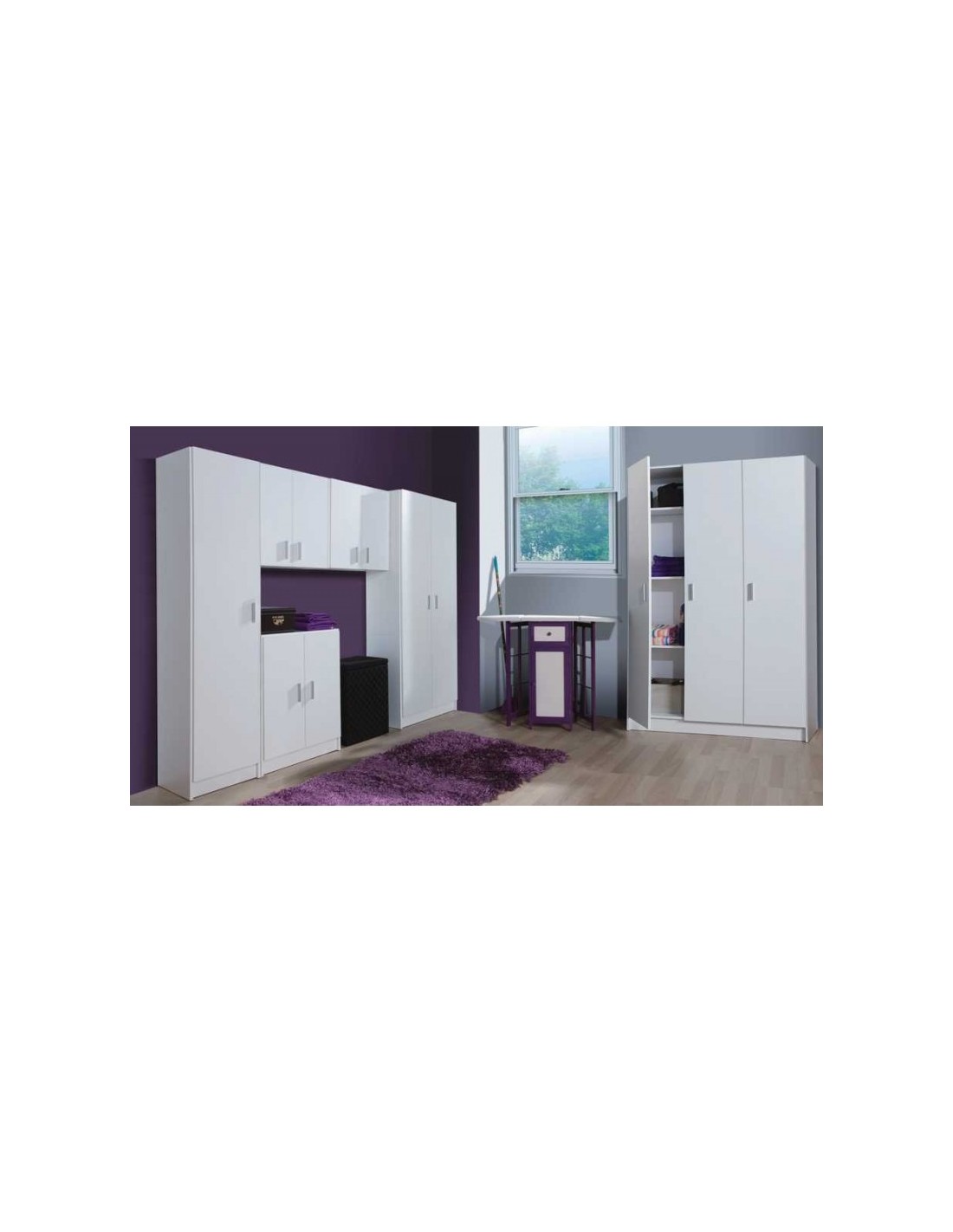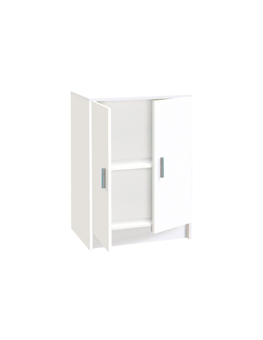 El Armario bajo Modelo tiene una estructura muy robusta y muy resistente. Cuenta con dos amplias puertas con tiradores metálicos. Tanto las puertas como los tableros laterales y superiores están hechos con melanina, con terminado en color blanco. Las puertas tienen tiradores metálicos en color gris, muy fáciles de usar, ya que cuentan con bisagras metálicas de gran eficiencia.