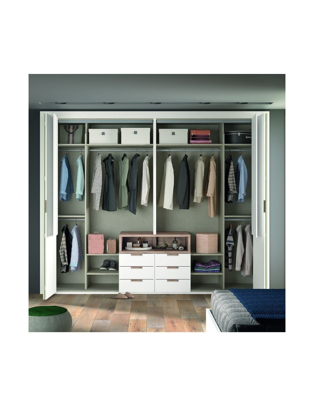 Le diseñamos su vestidor a medida haciéndole un dibujo en 3D para que pueda ver cómo quedaría montado y poder realizar los cambios que desee sobre el diseño y hacer pruebas de color y accesorios.