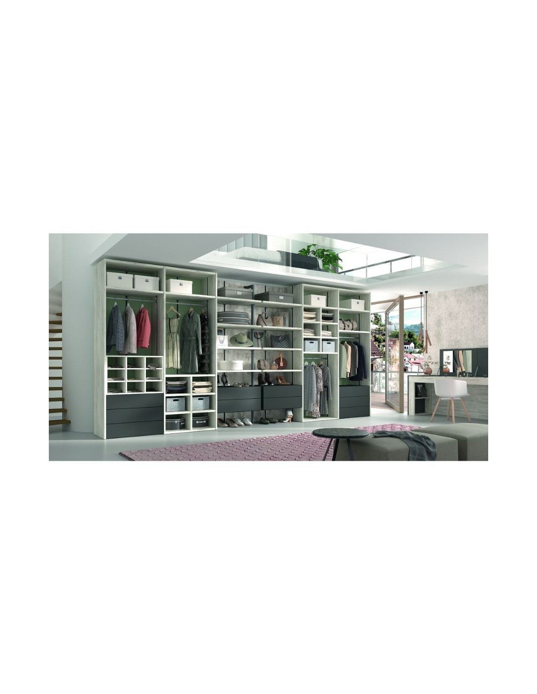 Le diseñamos su vestidor a medida haciéndole un dibujo en 3D para que pueda ver cómo quedaría montado y poder realizar los cambios que desee sobre el diseño y hacer pruebas de color y accesorios.