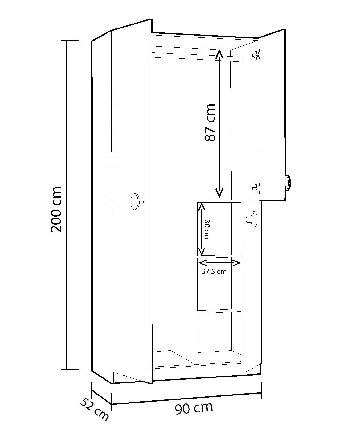 · Mueble: 200 cm (alto) x 90 cm (ancho) x 52 cm (prof.)