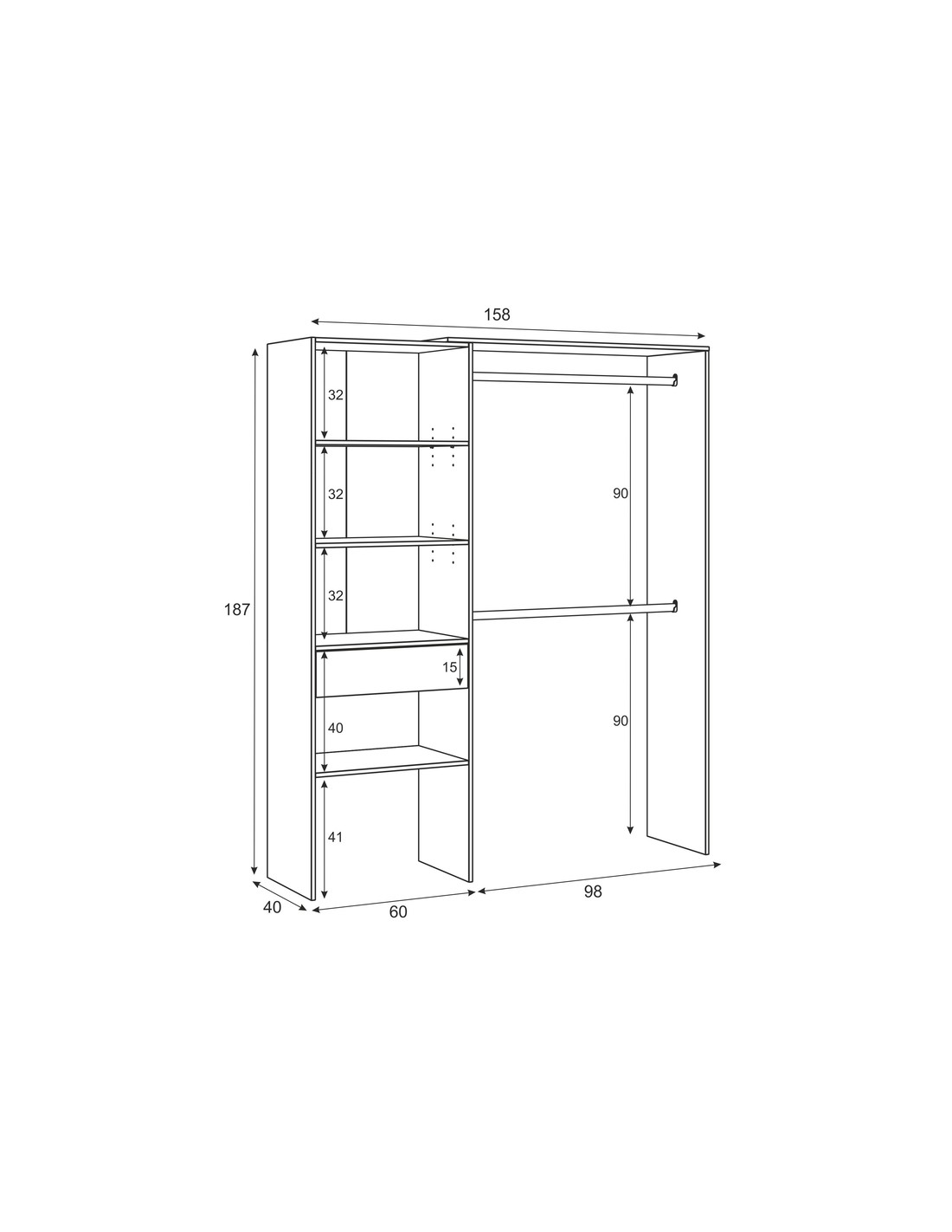 Armario Vestidor con Estantería 60cm + 2 Barras