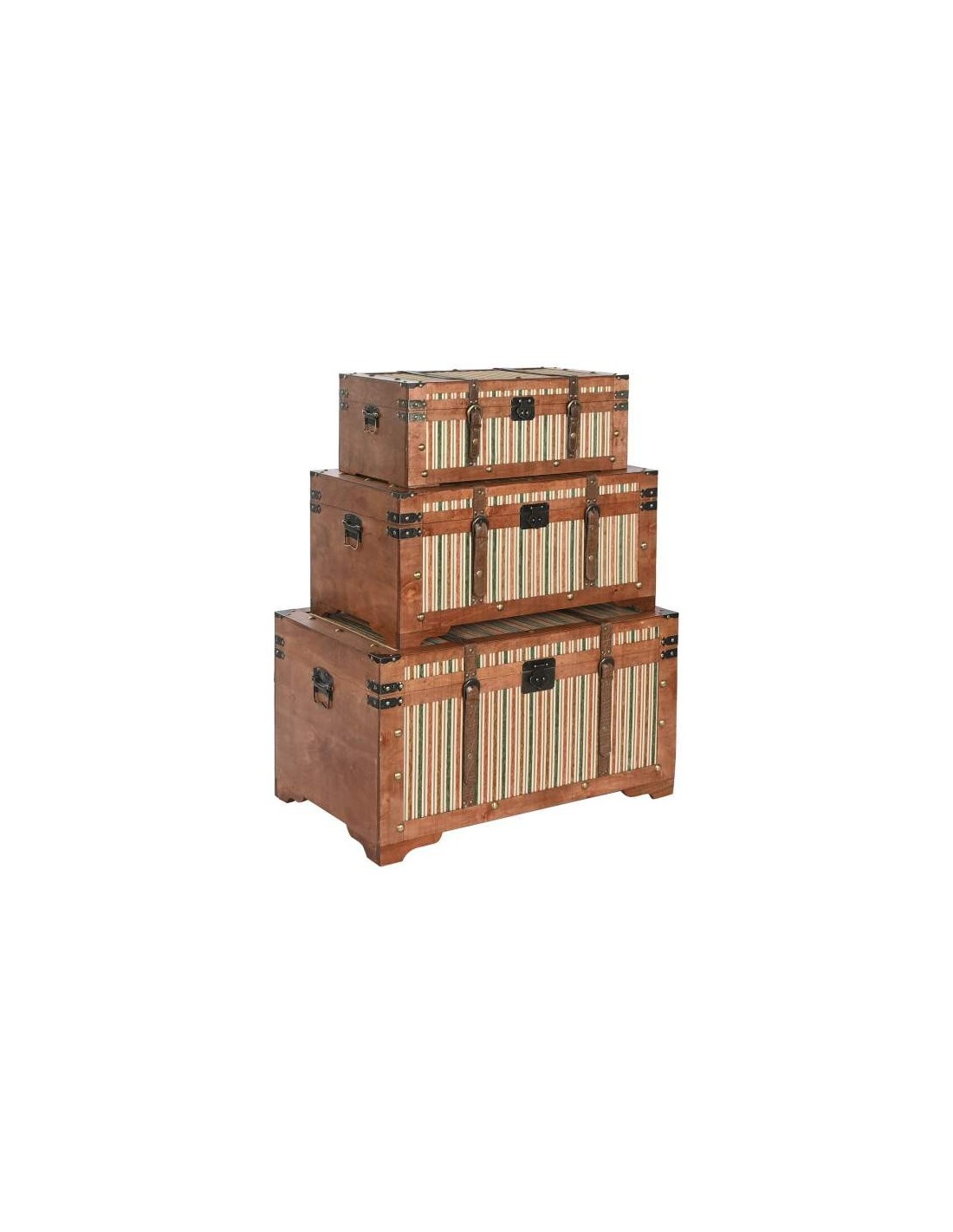 Baul Set 3 Lienzo Madera 80x49x45 Marron