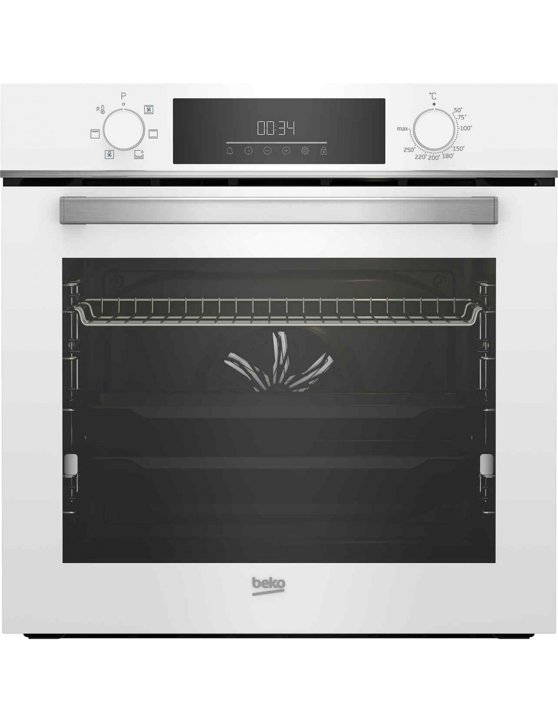 BEKO Horno Multif. 6, AEROPERFECT, A, Cristal Blanco, Limpieza SteamShine, Display digital + mandos, Rail Telescopico, 72 L
