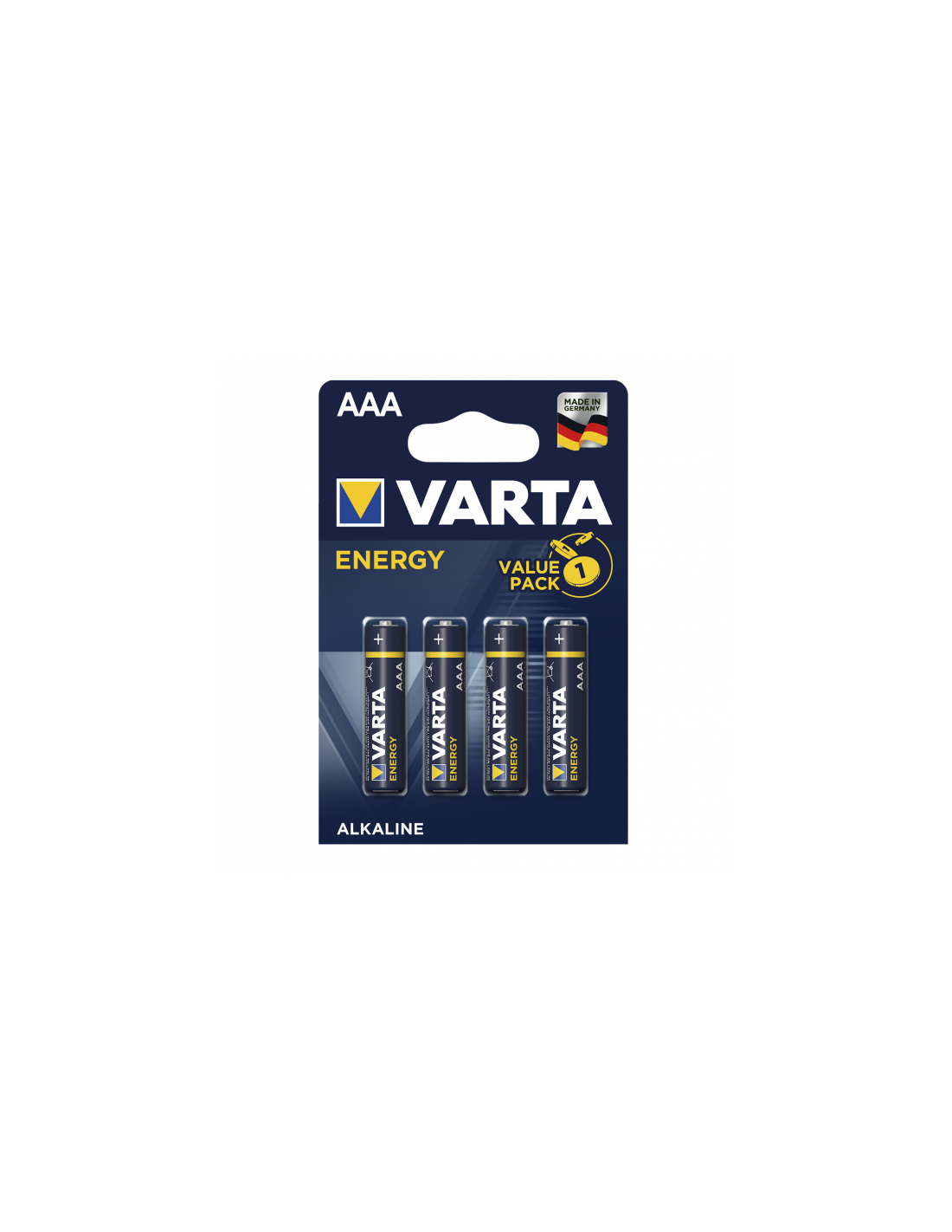 Blister de cuatro Pilas Alcalinas Varta Energy AAA modelo LR03 y 1,5 v. El sistema de apertura "Fresh Pack" permite sacar las pilas de una en una, y distinguir las nuevas de las usadas. Se recomienda para usos básicos como mandos a distancia, relojes y radios.