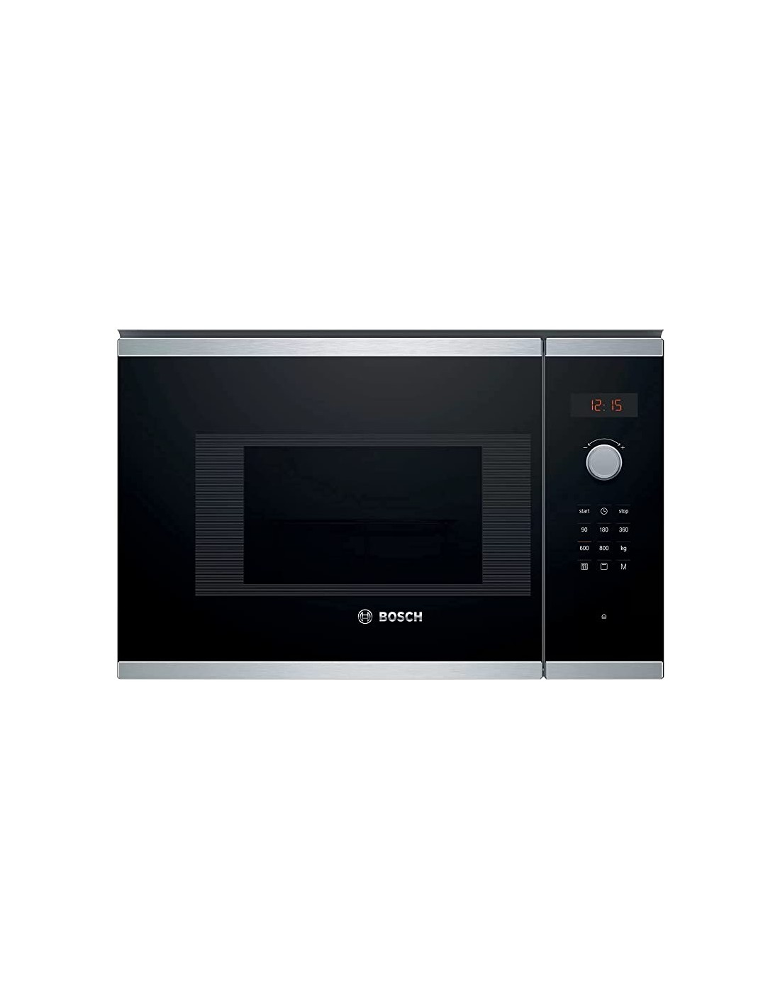 BOSCH Microondas 20L Integr. sin marco, electronico, 38 cm., Cristal negro/inox, Display LED, 8 prog. auto., plato giratorio 25,5 cm., Con grill