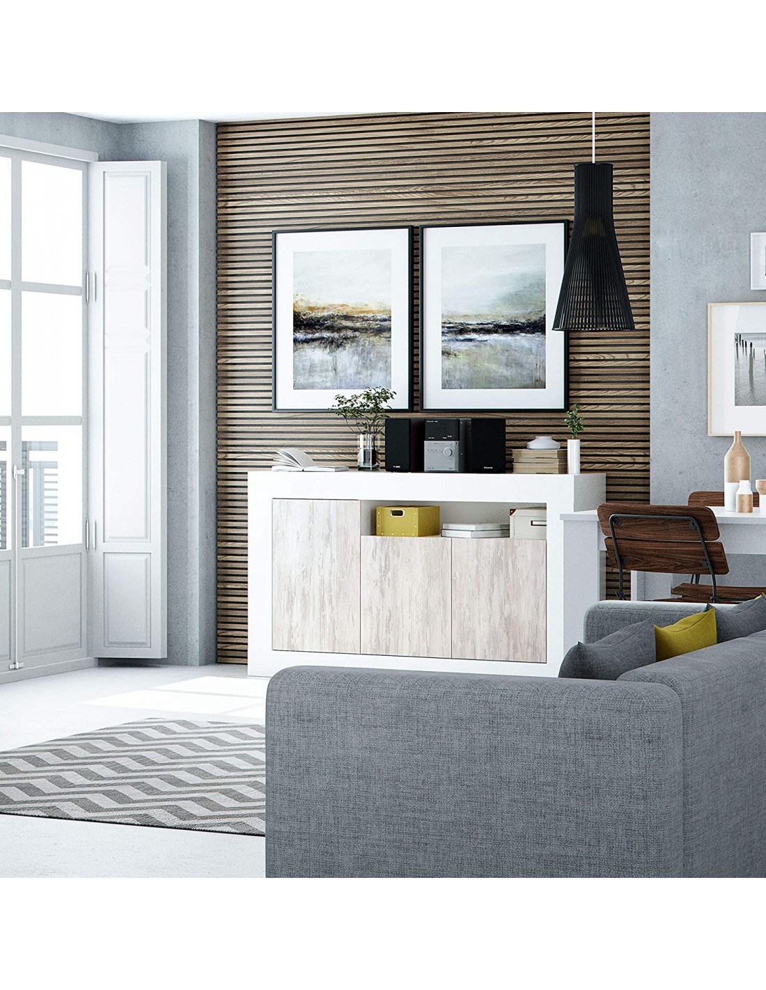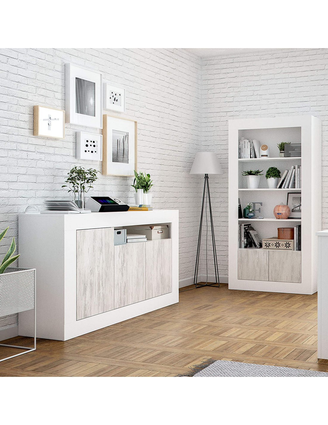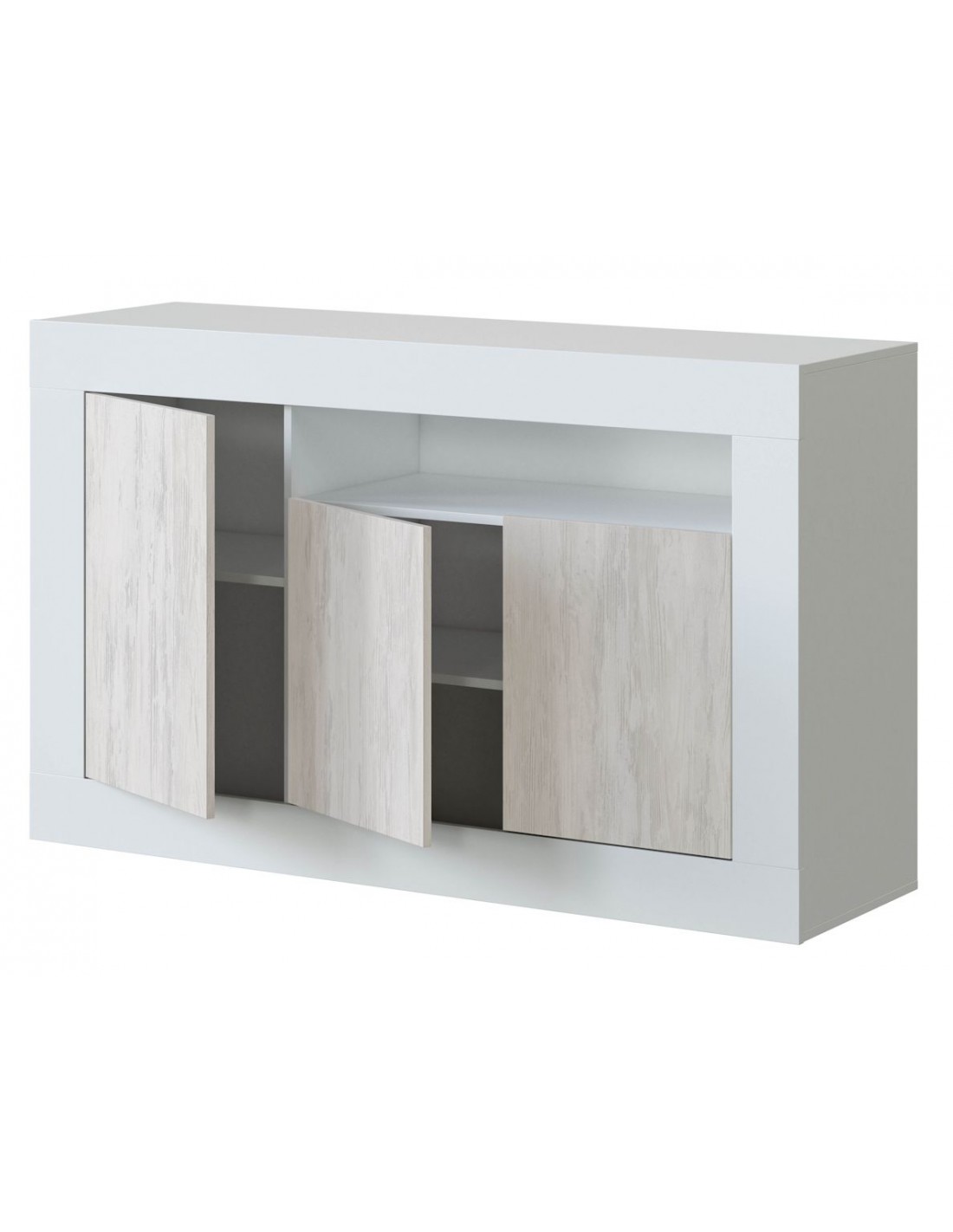 Este fantástico aparador 3 puertas en blanco Artik y blanco Velho es ideal para cualquier rincón. Integra 2 amplios compartimentos: uno simple y cerrado con una puerta y otro doble y cerrado con dos puertas. Además, tiene un pequeño hueco decorativo debajo del tablero principal.