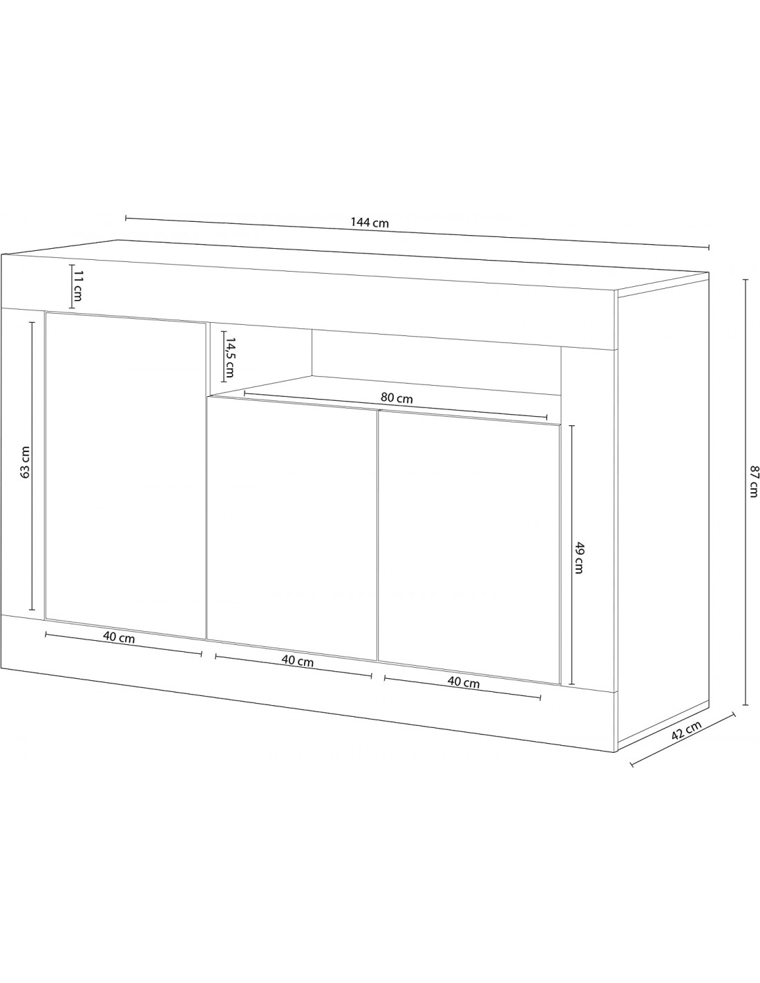 - Mueble: 87 cm (alto) x 144 cm (ancho) x 42 cm (prof.).