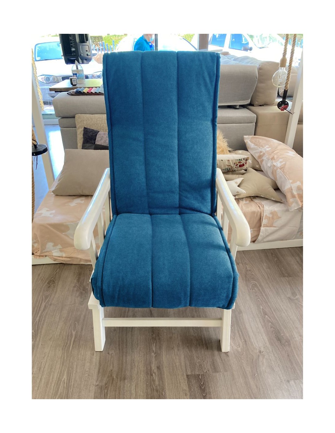 Increíble butaca mecedora de estilo clasico y gran confort que presenta un respaldo con orejeras para garantizar el confort y el descanso.