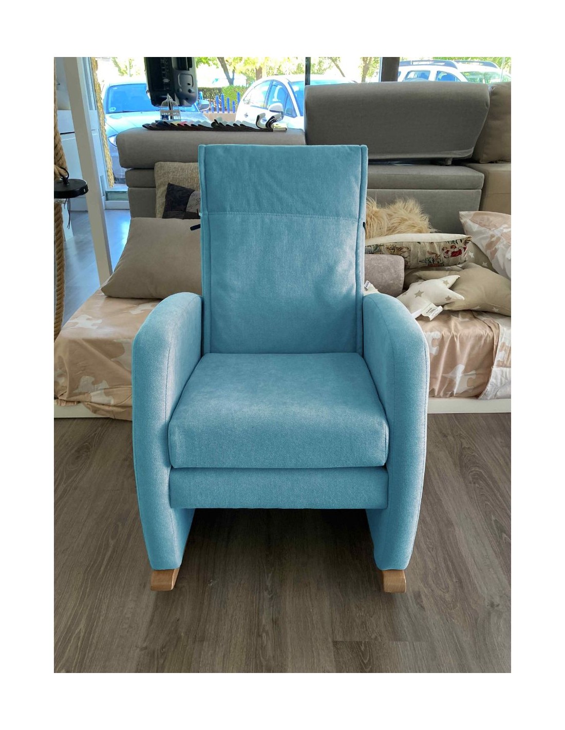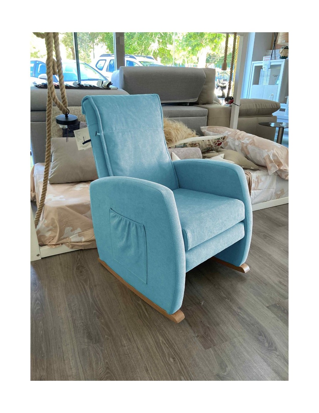 Increíble butaca mecedora de estilo elegante que presenta un bolsillo lateral ideal para almacenar productos para el cuidado del bebe o peluches y cuentos para leer a un niño infantil