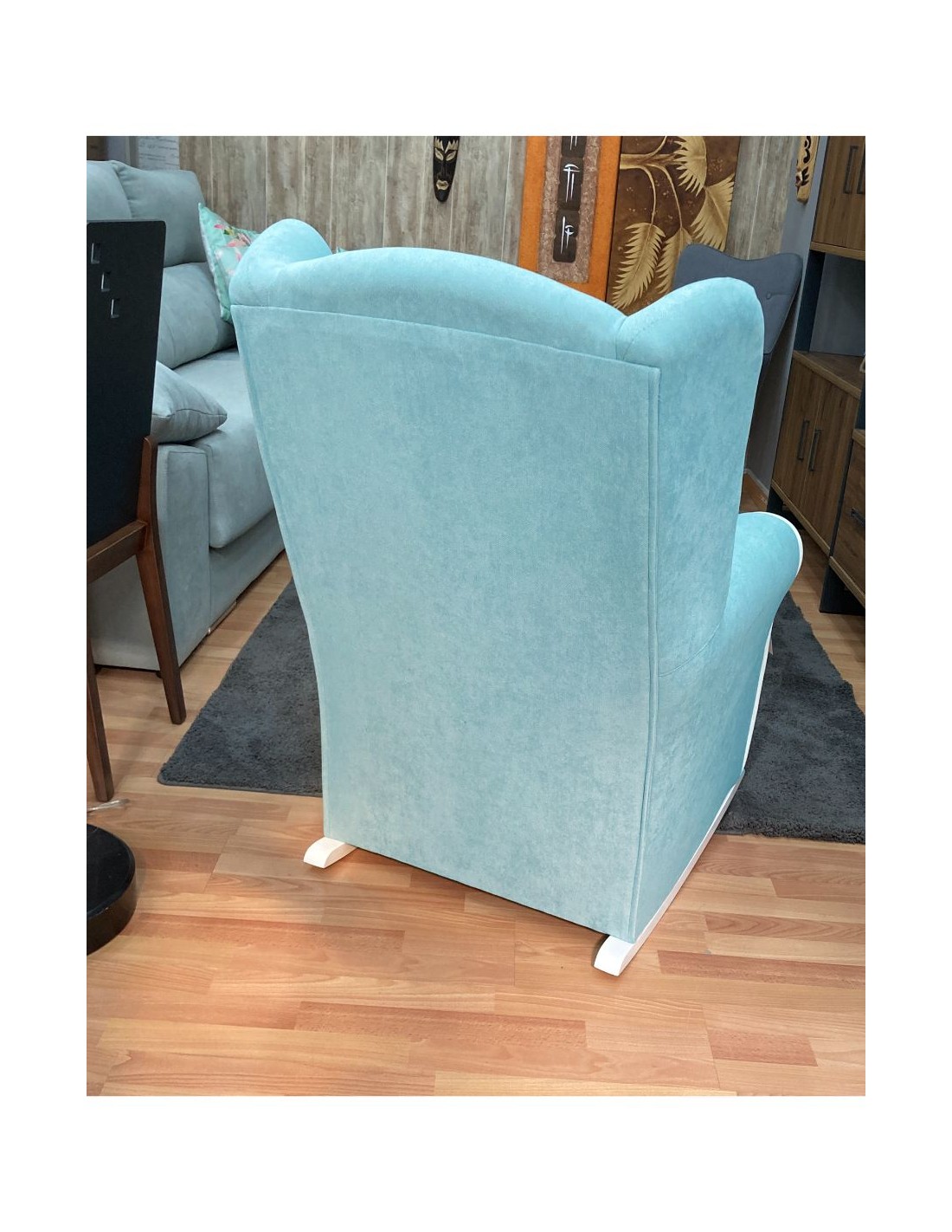Increíble butaca mecedora de estilo clásico y gran confort que presenta un respaldo con orejeras para garantizar el confort y el descanso. la tela básica es tipo chenilla y la antimanchas es un tipo de tela elegante con gramaje alto y muy agradable al tacto, se la recomendamos especialmente.