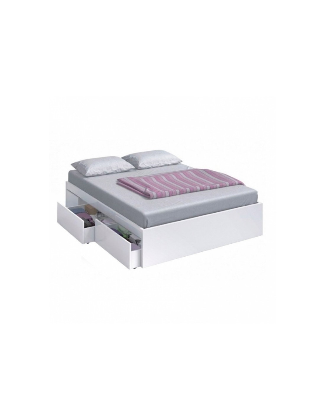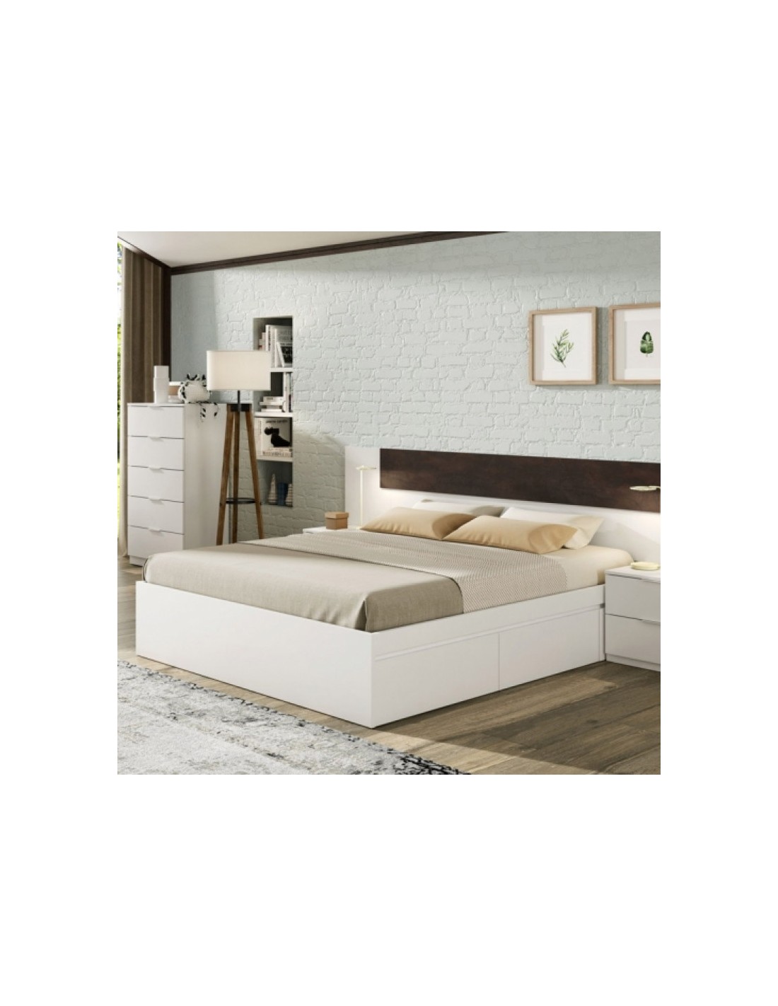 Lo mejor para su dormitorio es la cama modelo con 4 cajones en color blanco artik. Esta cama está preparada para un colchón de matrimonio de 150x190. Su estructura es muy resistente gracias a su fabricación con tableros de partículas melaminizados.