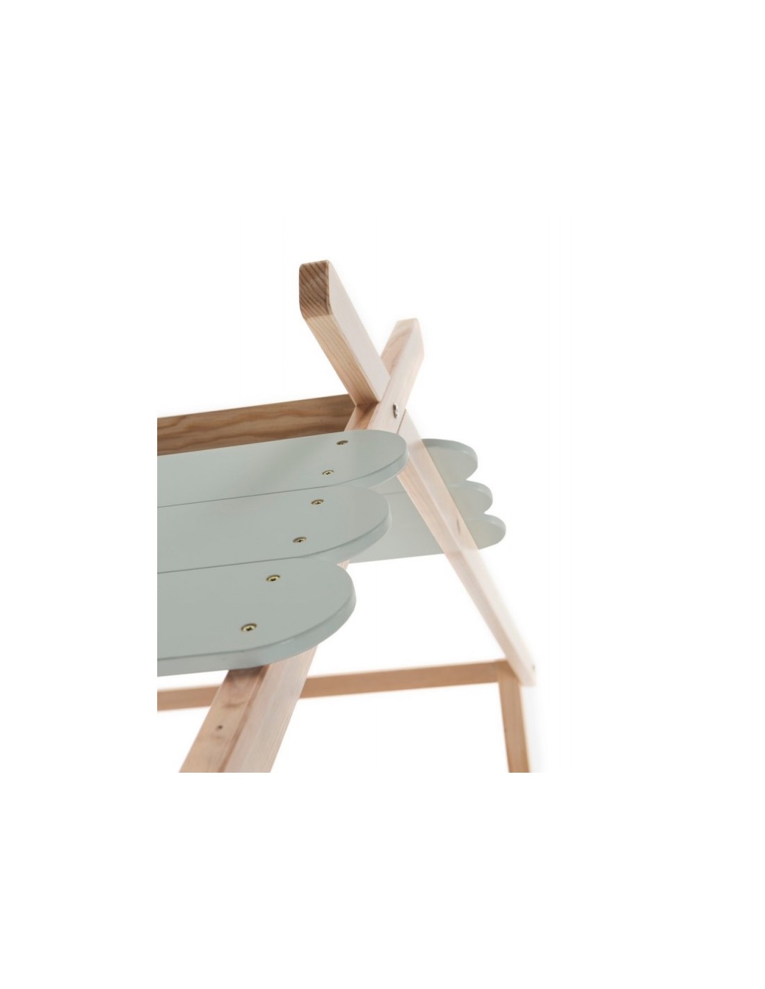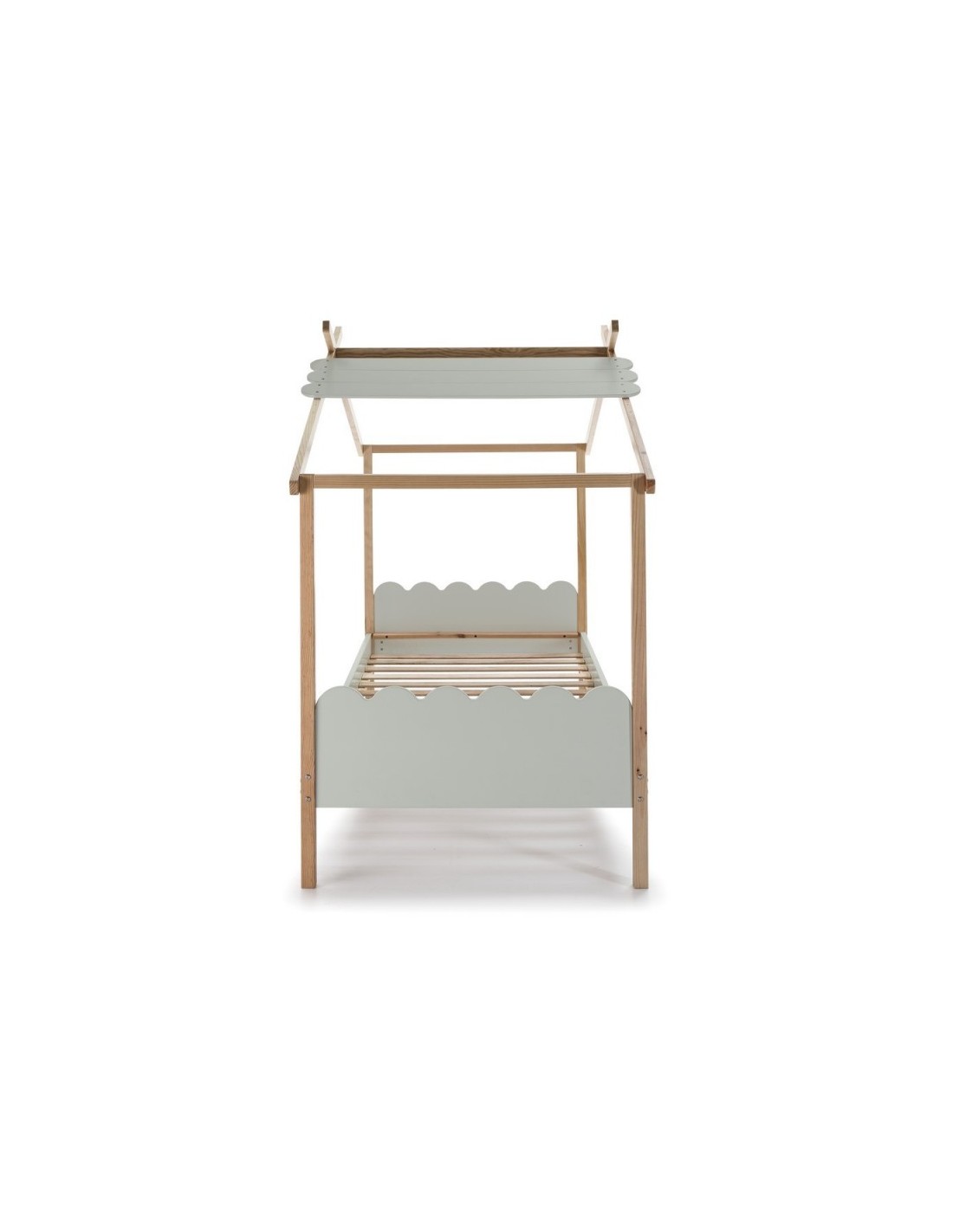 Cama cabaña realizada en madera DM lacado color verde y combinada con madera de pino acabado natural.