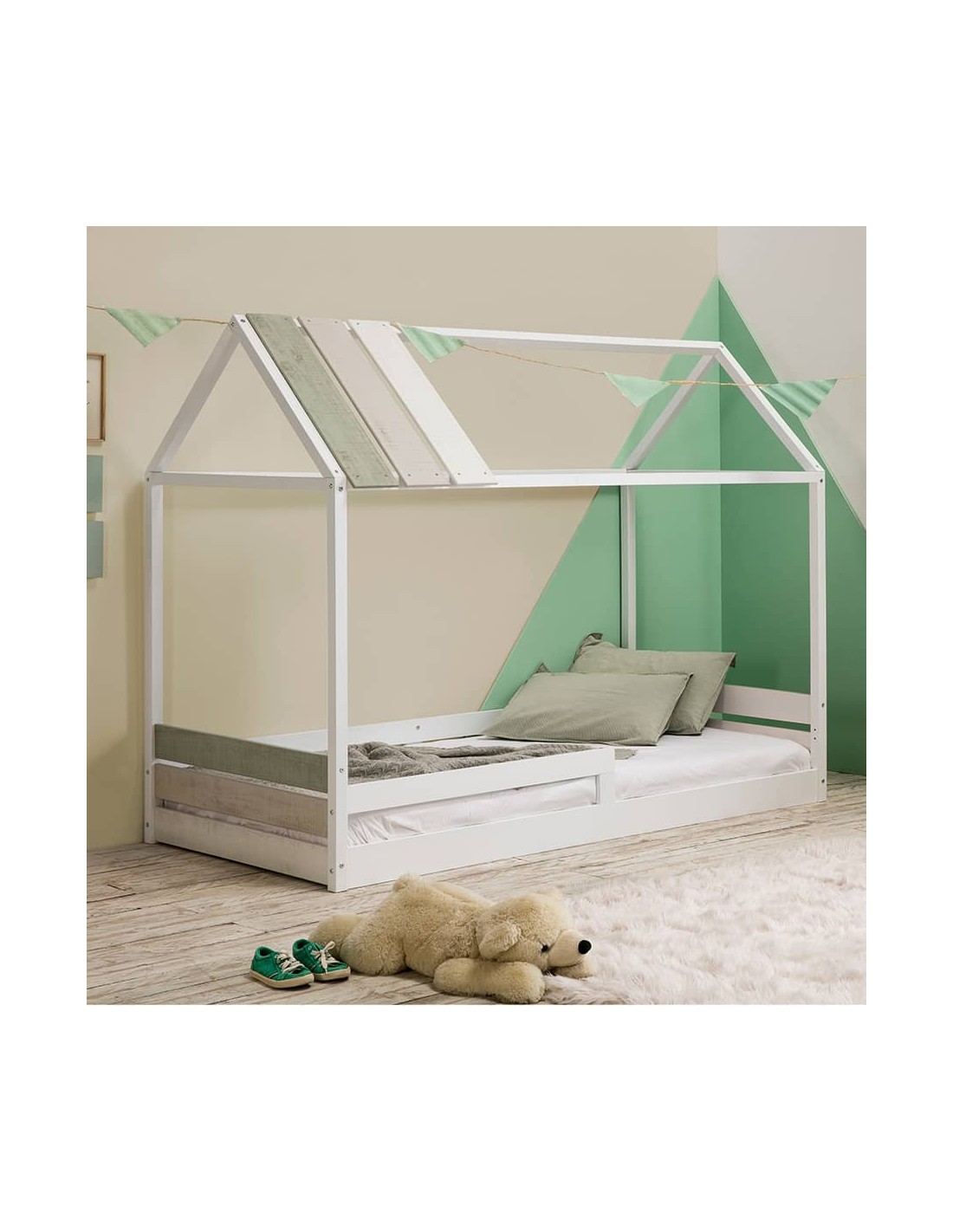 Esta cama cabaña es una cama robusta y resistente que otorga un espacio intimo y mágico para los peques. Fabricada en madera maciza y pino.