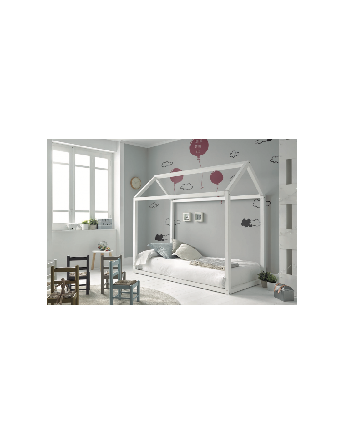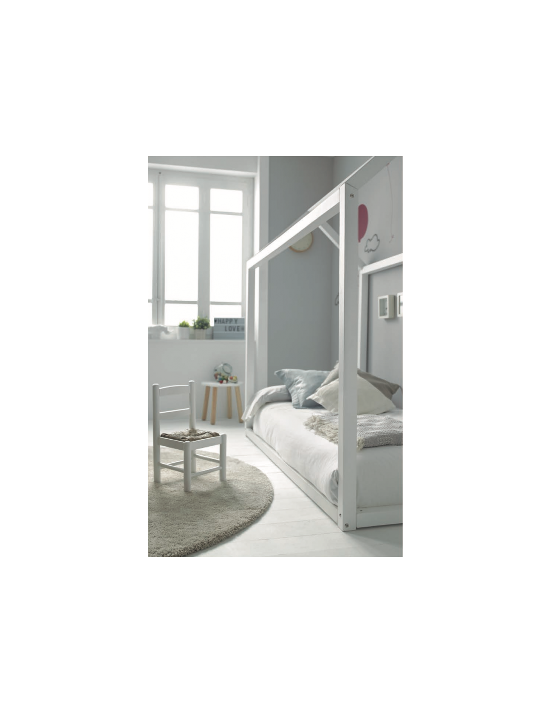 Cama casita realizada en madera de pino macizo lacado color blanco.