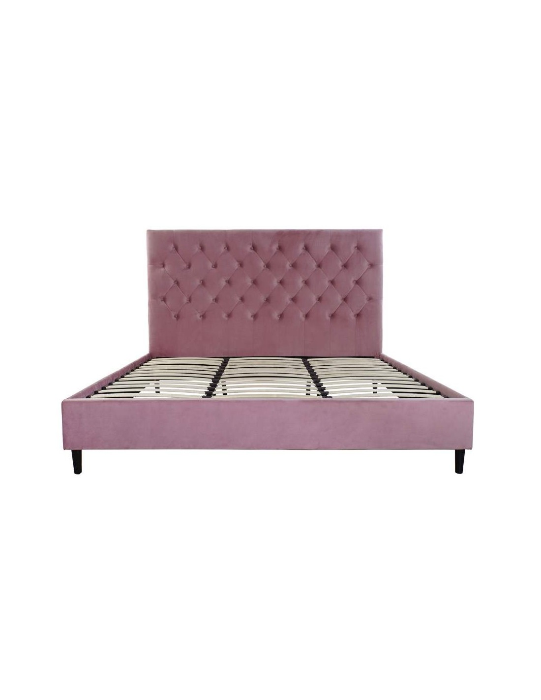 Cama Madera Metal 187x210x137 Capitone Rosa
