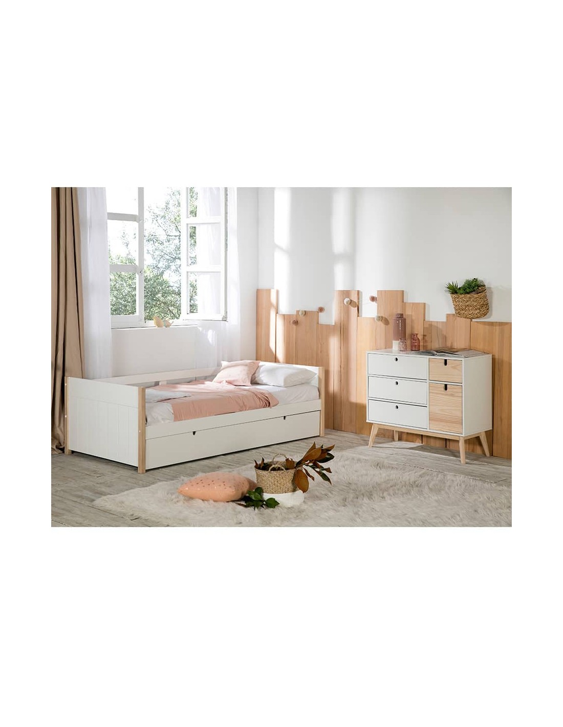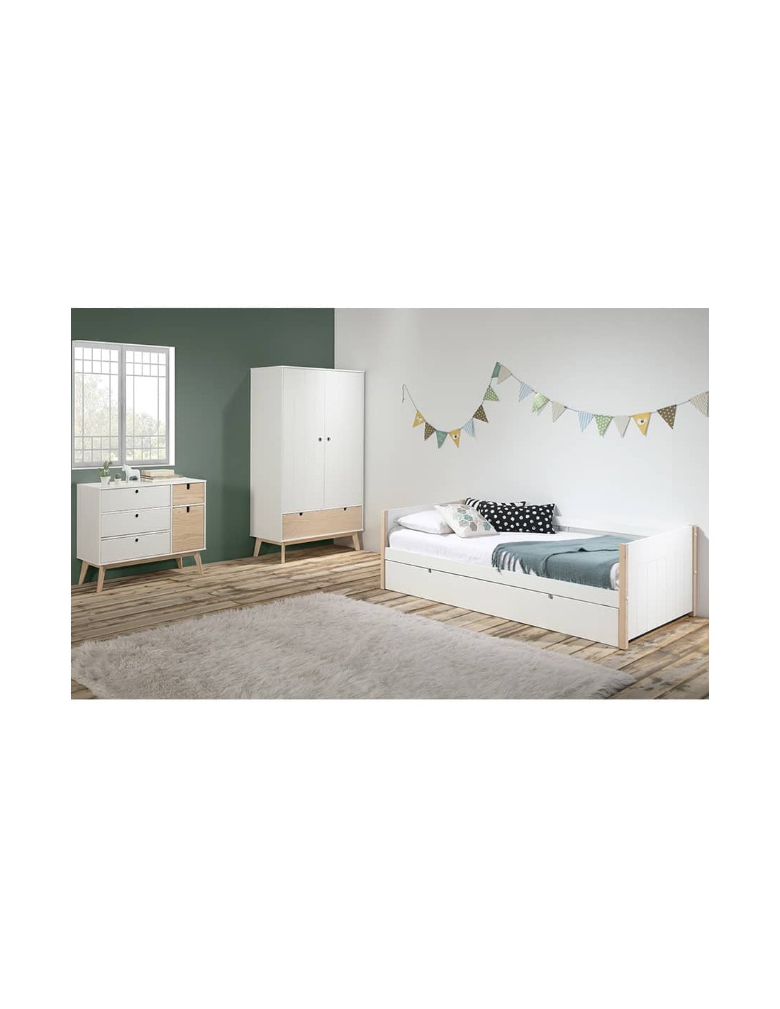 La cama nido Keira es una cama robusta y resistente que dará la solución perfecta a estos momentos de apuro en los que de repente tenemos una persona más para dormir. Ya sea para fiestas de pijama autogestionadas por los propios niños o para acoger las visitas de los primos que se van a quedar algunos días, los invitados siempre agradecen el poder descansar en un colchón cómodo que trate bien a su espalda.