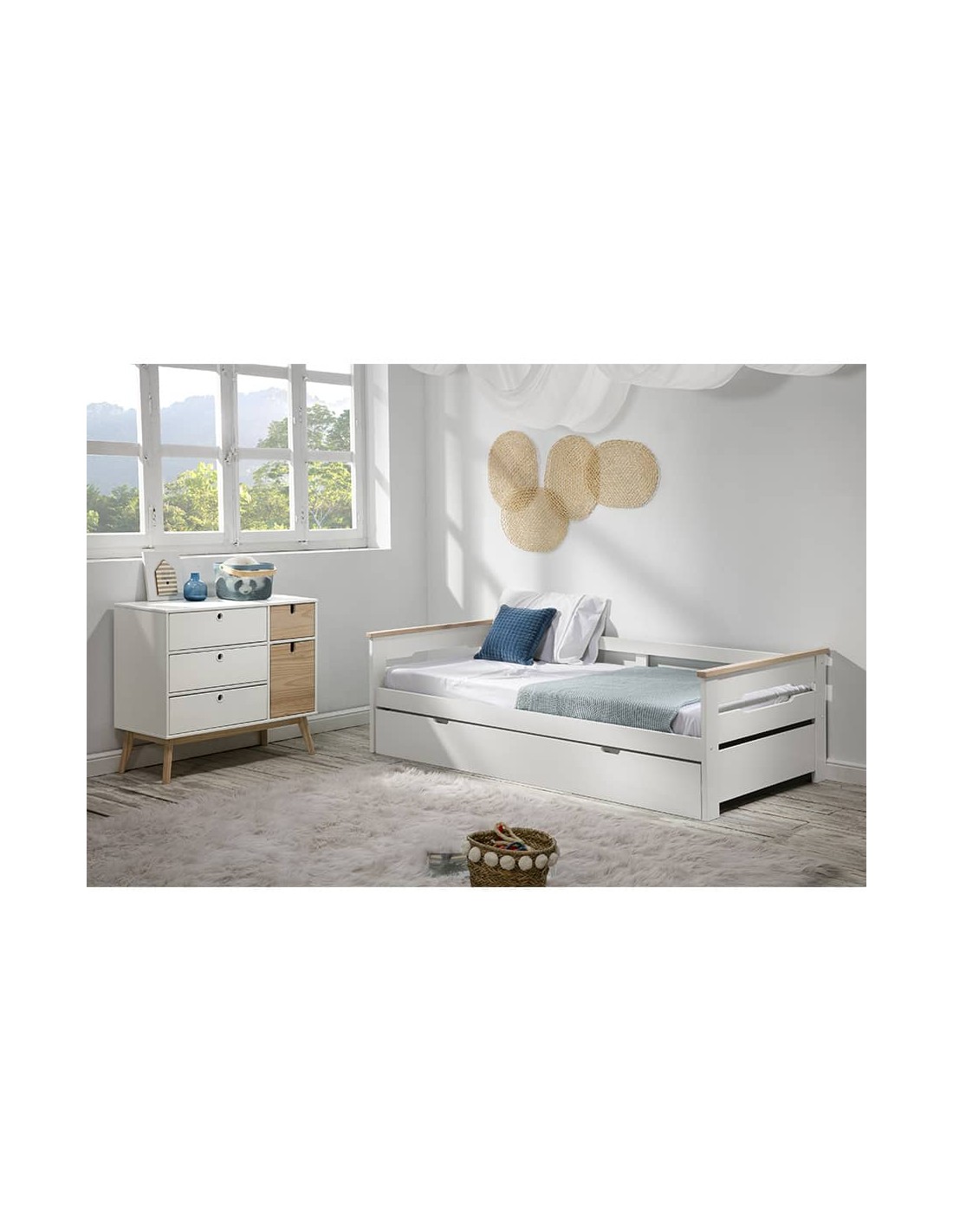 La cama nido Zeri es una cama robusta y resistente que dará la solución perfecta a estos momentos de apuro en los que de repente tenemos una persona más para dormir. Ya sea para fiestas de pijama autogestionadas por los propios niños o para acoger las visitas de los primos que se van a quedar algunos días, los invitados siempre agradecen el poder descansar en un colchón cómodo que trate bien a su espalda.