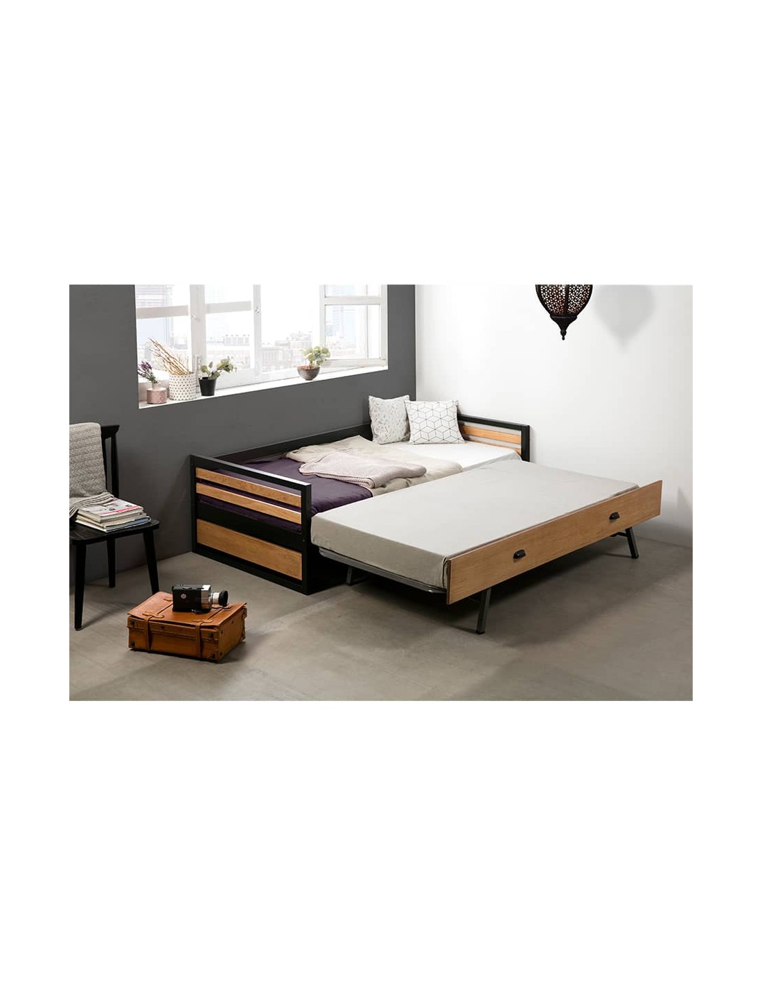 Cama nido robusta fabricada en madera maciza y pino con acabados de gran calidad. Ideal y versatil para ahorrar espacio y acojer cualquier visita repentina.