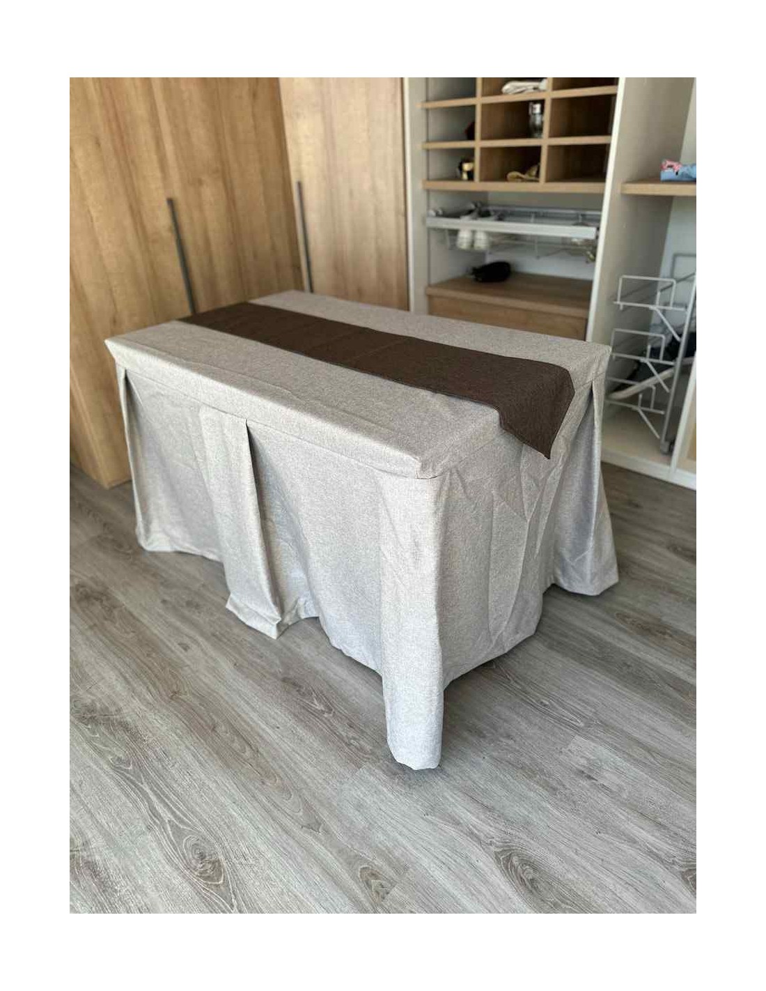 Un camino de mesa para camilla es un elemento decorativo y funcional que se utiliza para proteger y embellecer la superficie de una mesa camilla. El camino de mesa suele tener forma rectangular y cubre la parte superior de la mesa, colgando hacia abajo en los lados.