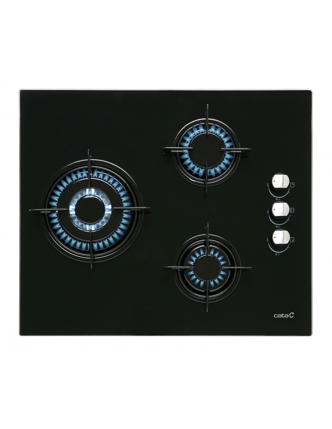 CATA Encimera cristalgas 3F, CI 6021 BK, Gas natural