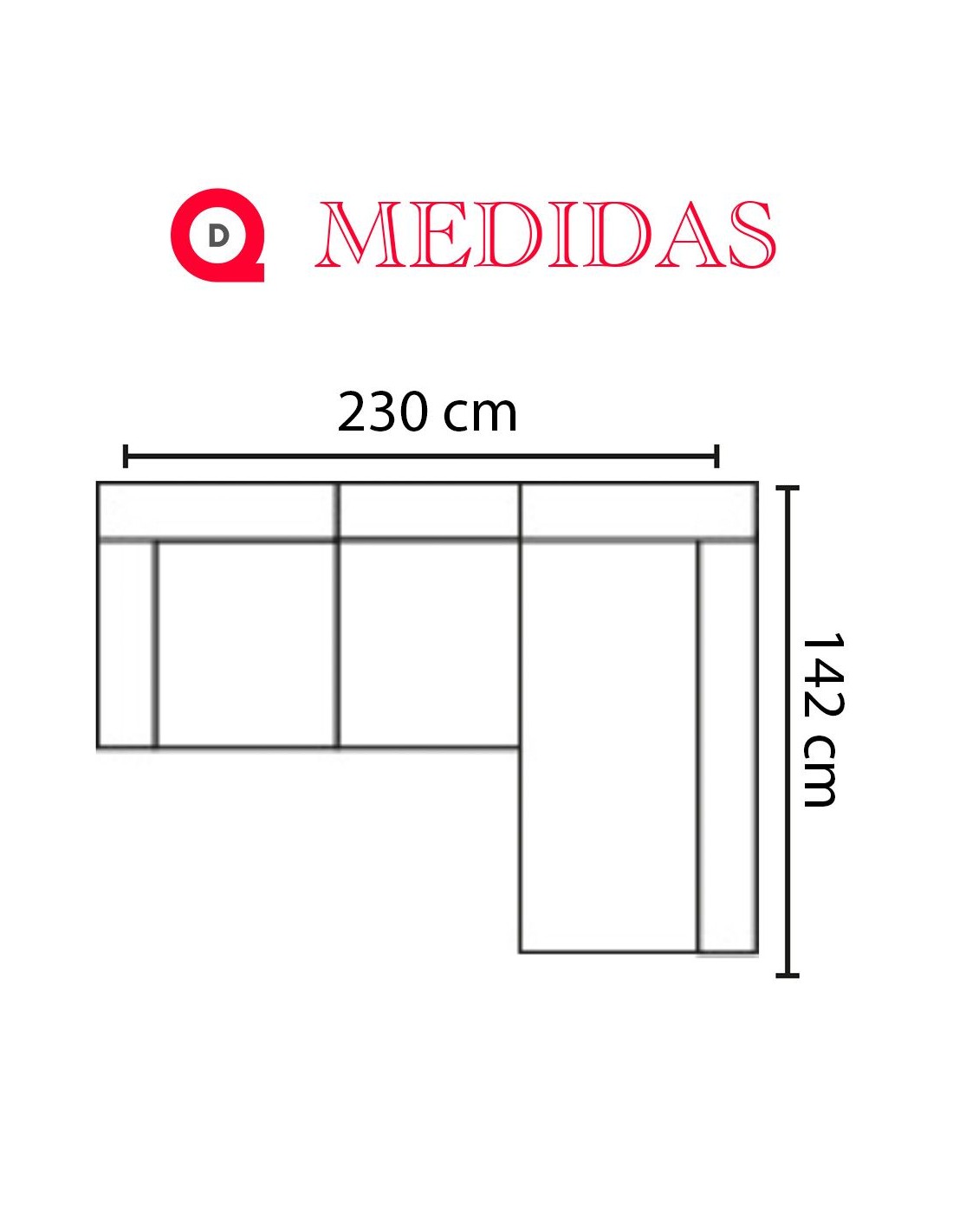 Largo: 230cm - Fondo: 142cm - Alto: 105cm