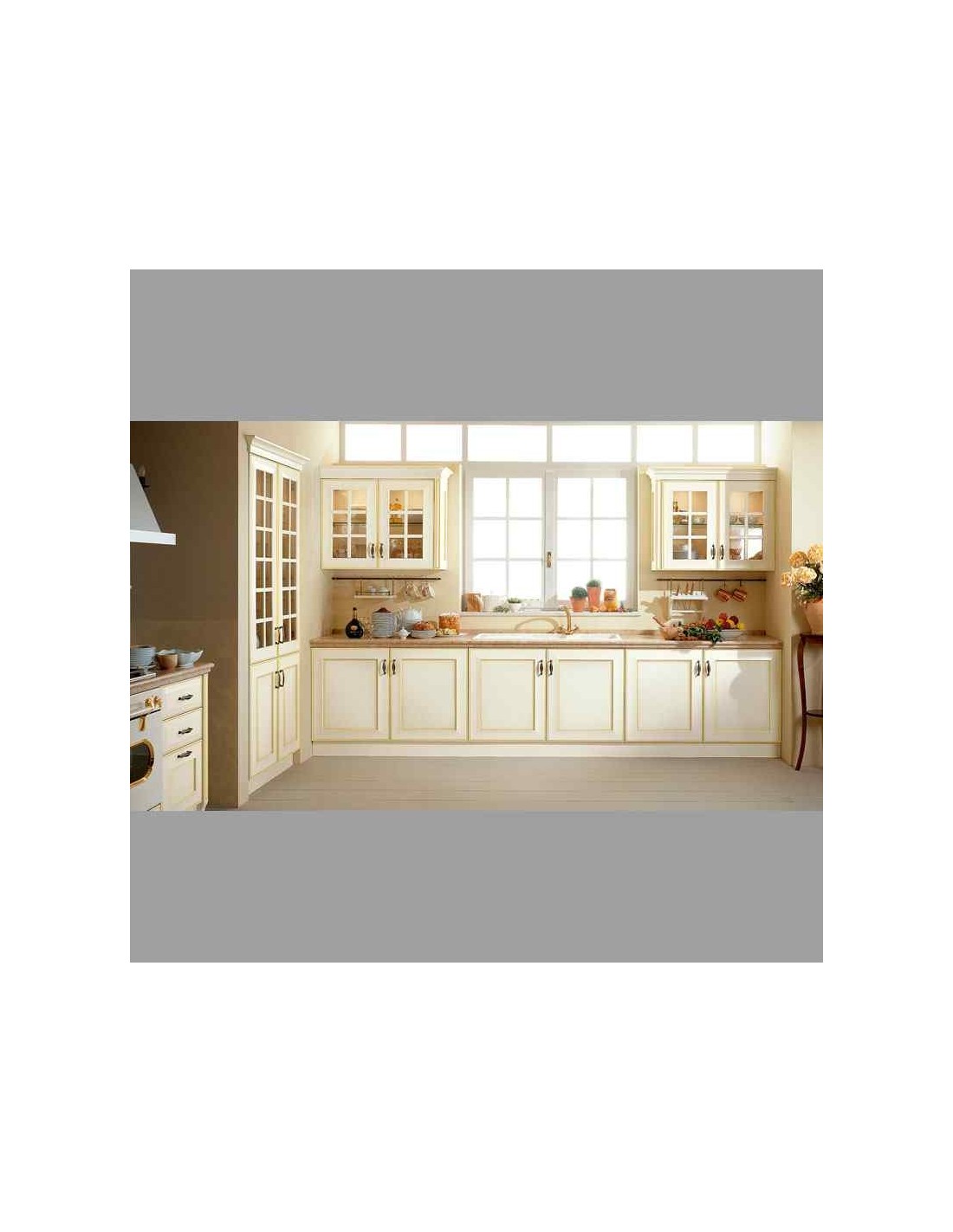 Cocina blanca plafon elegante lacada polilaminado blanca crema envejecida