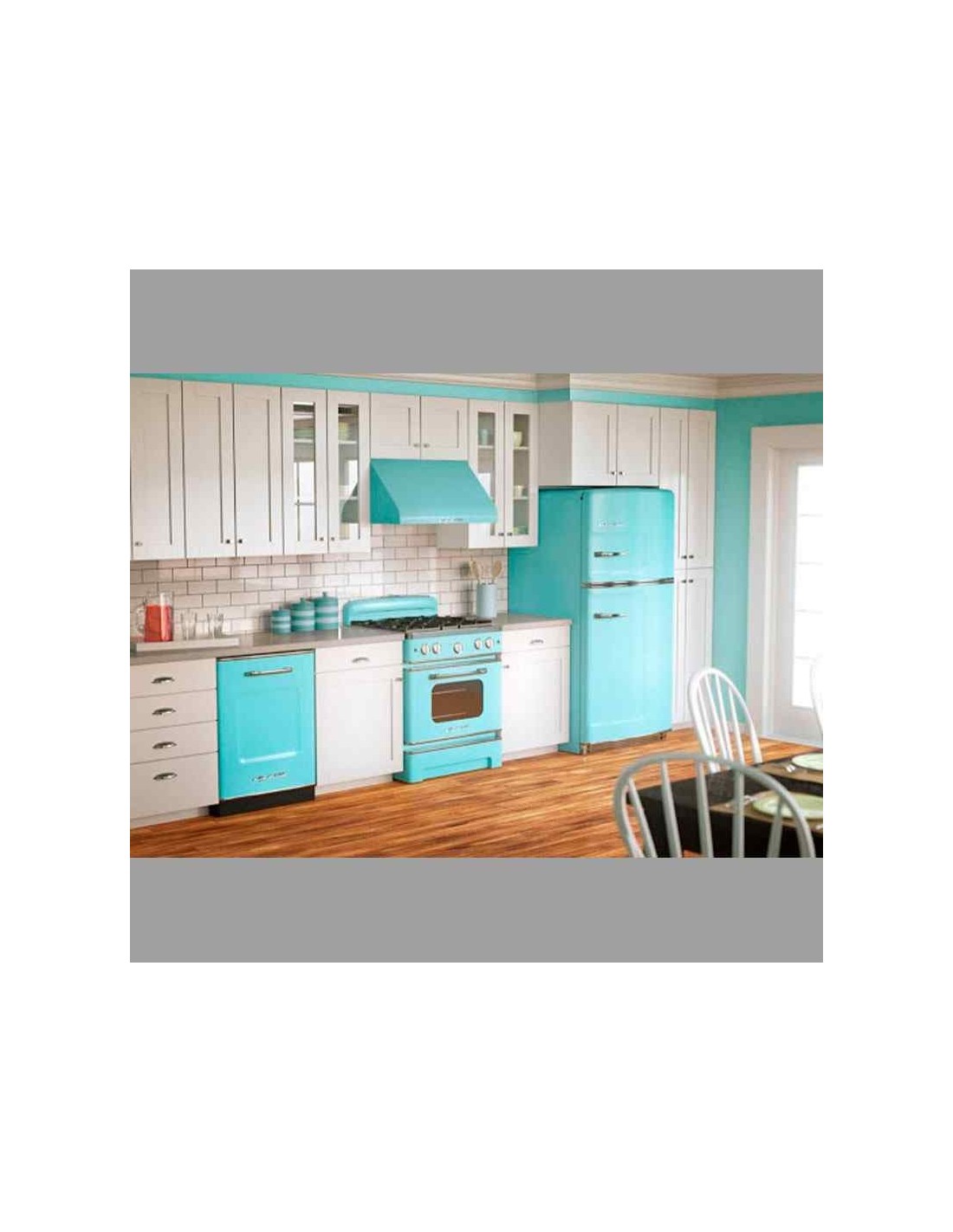 Cocina blanca plafon elegante lacada polilaminado blanca electrodomesticos smeg turquesa