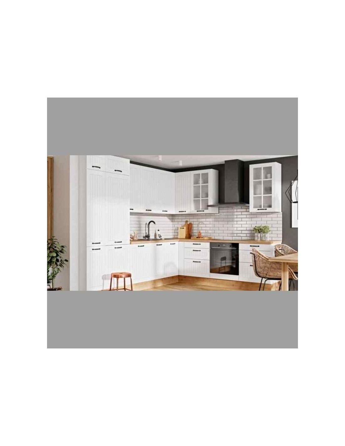 Cocina blanca plafon elegante lacada polilaminado blanca encimera madera