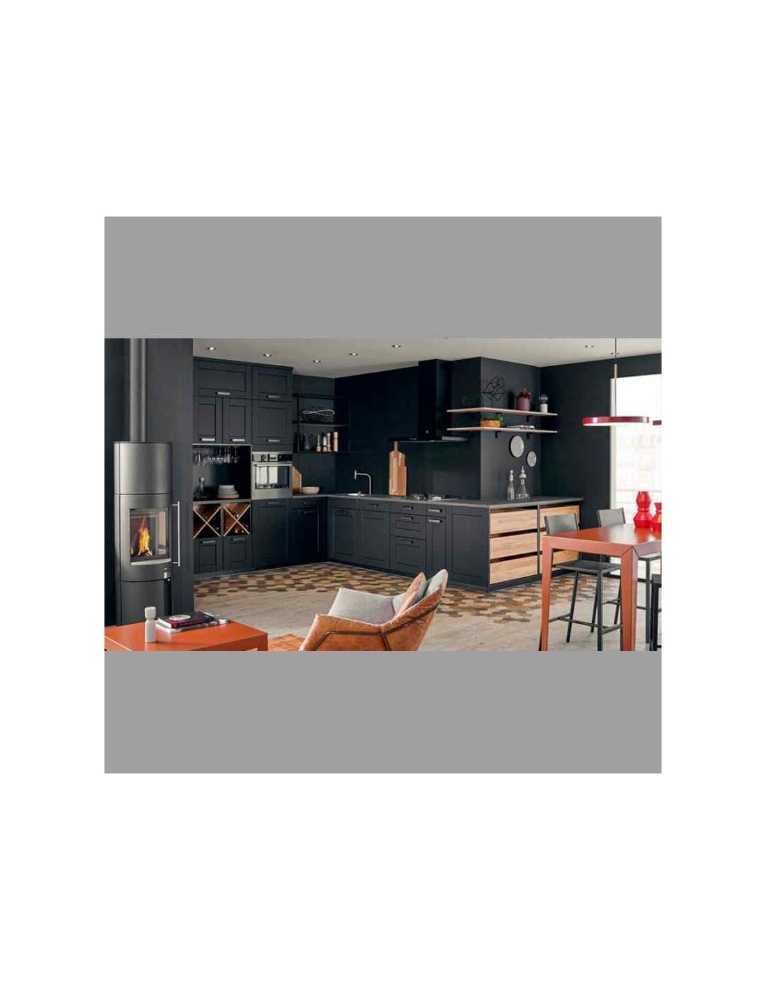 Cocina blanca plafon elegante lacada polilaminado negra grafito madera