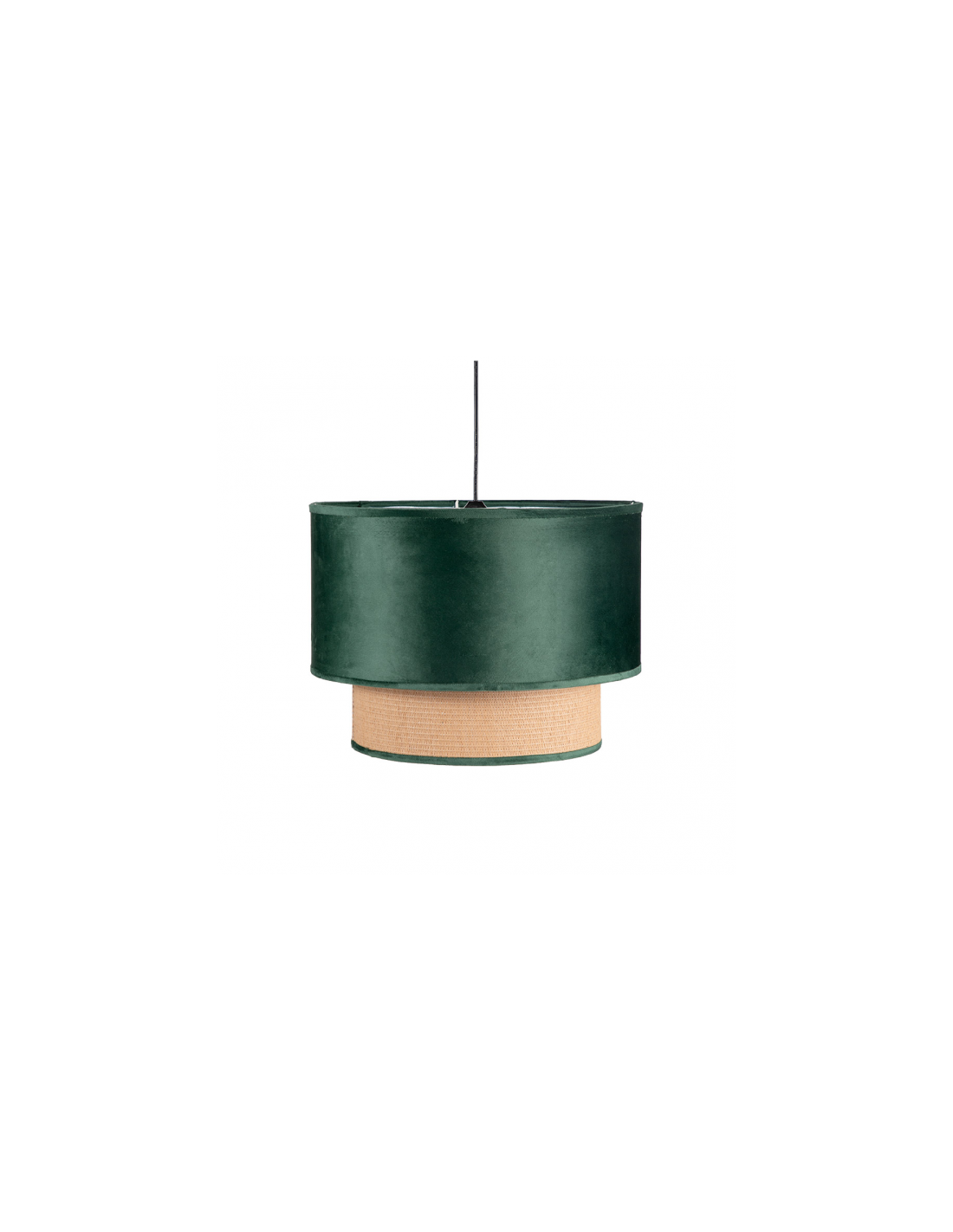 Colgante de diseño con dos pantallas serie NERVA combina pantalla de terciopelo de color VERDE con pantalla color nea y de estilo moderno. Tiene 40 cm de diámetro con unas dimensiones, de altura regulable, 72X40X40 centímetros. Contiene un portalámpara E27. Bombilla no incluida. Tiene un peso NETO de 840 gramos. También disponible en Azul, Rojo Vino y Rosa.