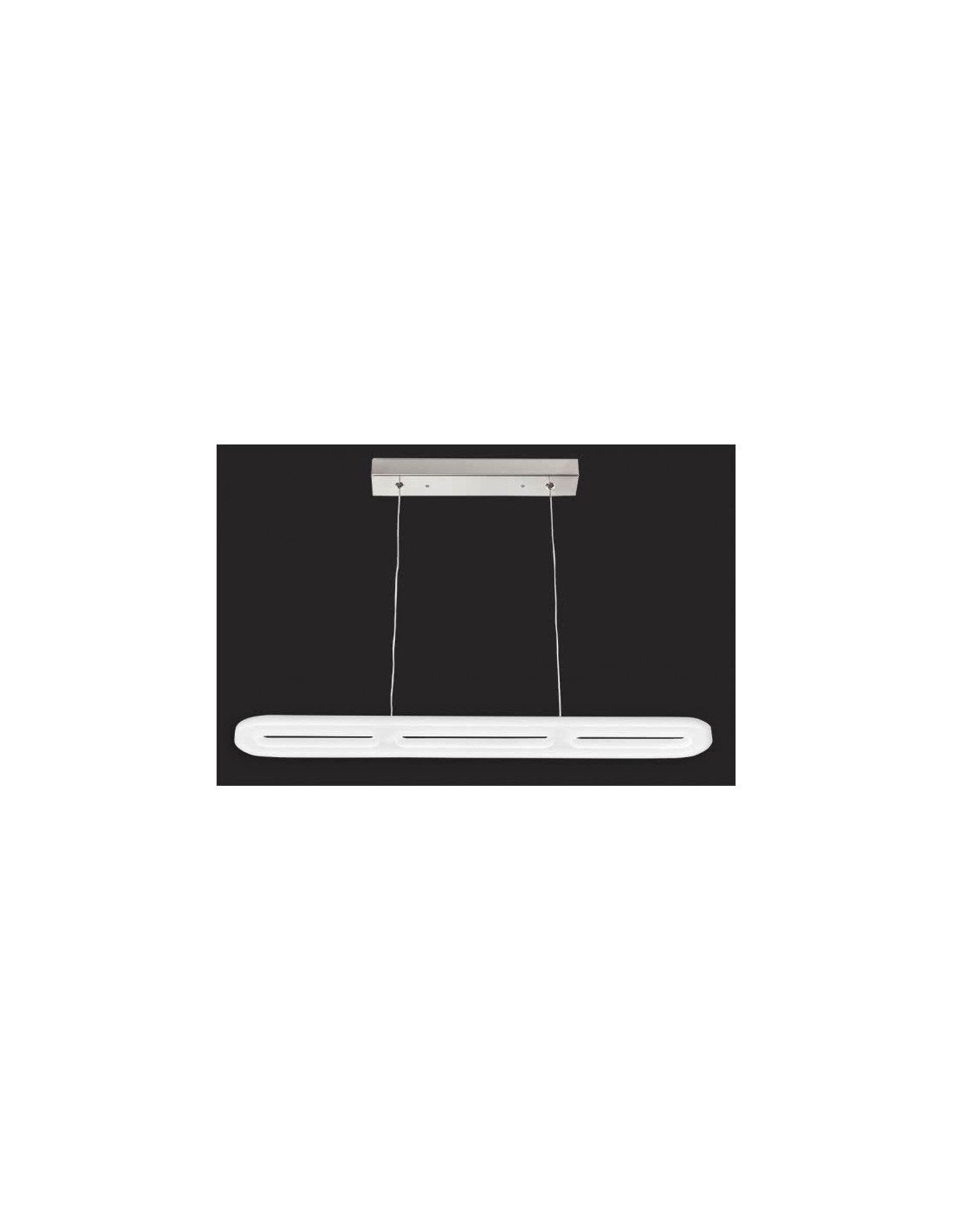 Colgante de techo de LED de la serie COLISEO con base rectangular en metal cromado. Esta base que va sujeta al techo tiene una medida de 30x5x3 centímetros. Su pantalla es de metacrilato con una medida de 60x8x1,5 centímetros y tiene una potencia de luz de 24 watios, 1920 lúmenes y 4000 K. Este colgante es regulable entre 10 y 110 centímetros de altura y su peso neto es de 870 gramos.