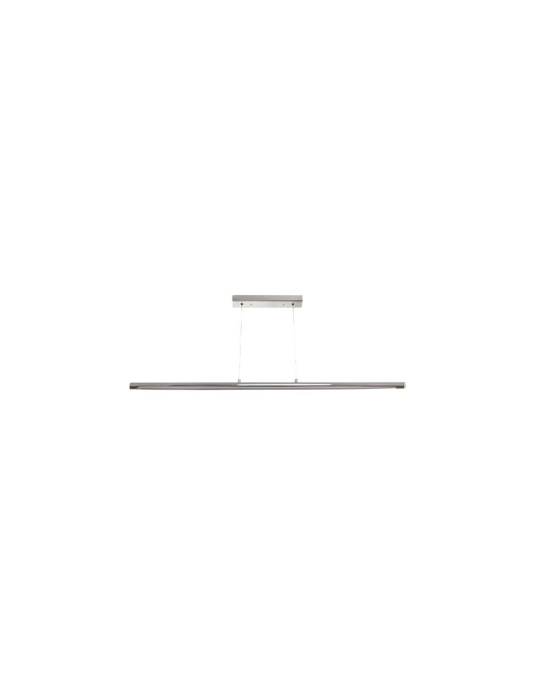 Colgante con tecnología LED integrada de la serie GIZA, realizado en metal cromado. Su base rectangular para sujetar al techo tiene una medida de 40x5x3 centímetros. Su altura es regulable entre 10 y 110 centímetros, y la medida del tubo es de 100,5x3 centímetros. Su potencia de luz es de 24 watios, 1920 lúmenes y 4000K. Y tiene un peso neto de 850 gramos.