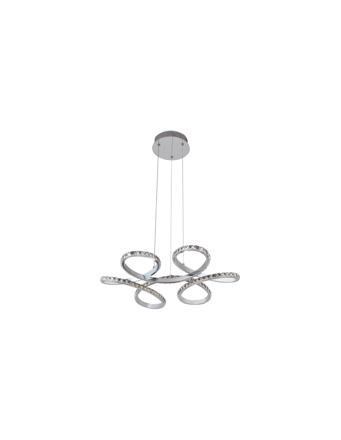 Colgante serie Dragón de color cromo. Este moderno colgante de led integrado está realizado en metal y cristal. Se caracteriza por formas curvas entrelazadas que le otorgan además de movimiento, un juego lumínico muy interesante. Sus dimensiones son, 110x50x50cm. Su potencia es de 48W, 4800 lúmenes y el color 4000ºk de luz neutra.