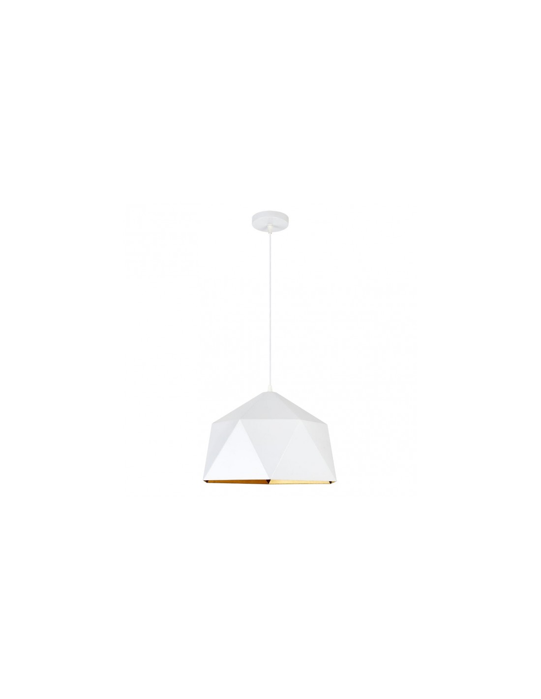 Colgante de la serie ALCATRAZ, de original y moderno diseño geométrico acabado en metal lacado en color BLANCO con interior de color oro. Sus dimensiones regulable en altura son 120x38x38 centímetros. Su peso neto es de 960 gramos y contiene un portalámparas E27. Bombilla no incluida. Modelo también disponible en Negro-oro.
