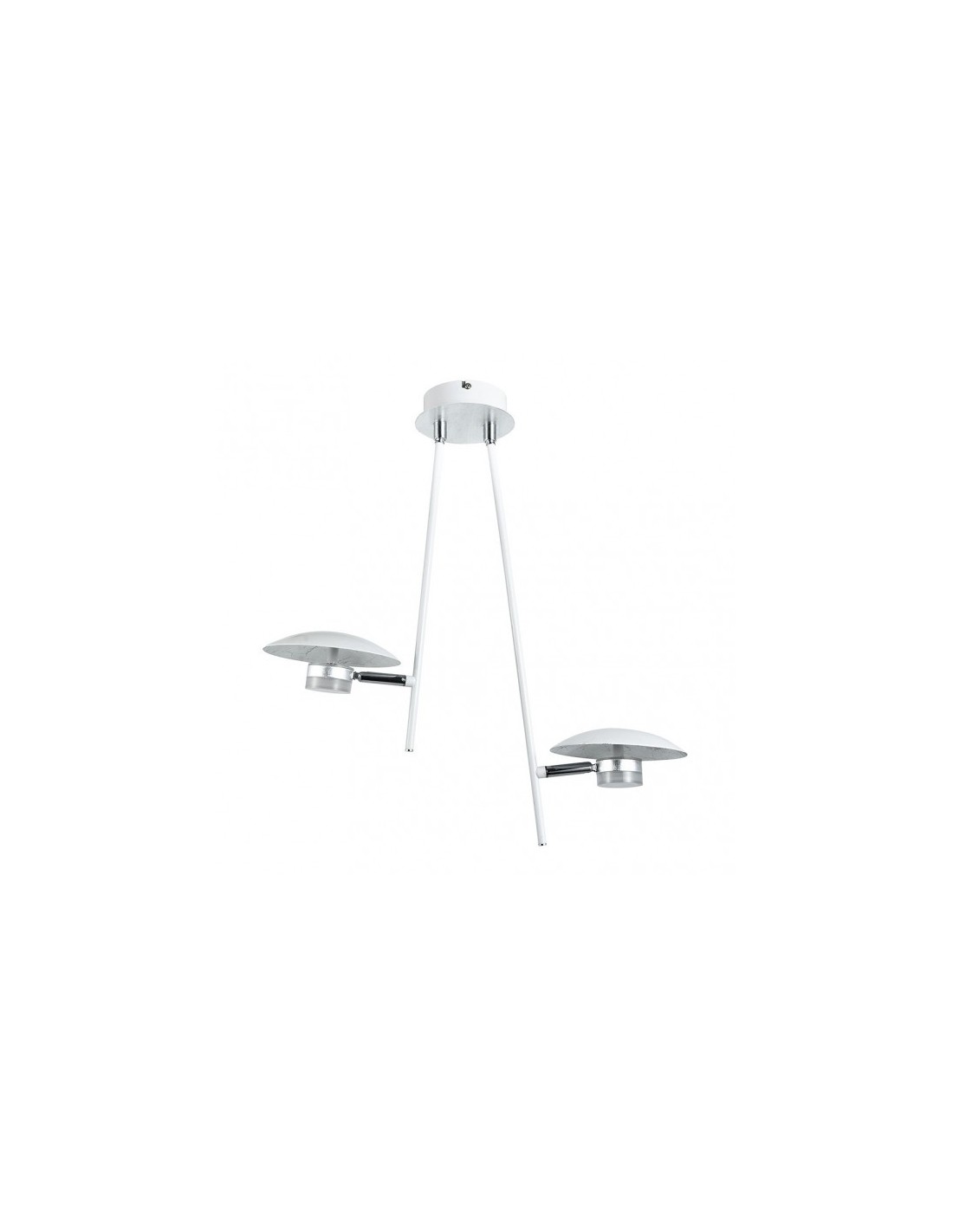 Colgante de dos luces serie CIUDAD DEL CABO de color BLANCO/PLATA. Se compone de dos brazos DIRIGIBLES, realizados en metal, que nacen de un cuerpo central pegado al techo con una especie de pantallas también metálicas que coronan los focos ORIENTABLES, pudiéndose dirigir la luz directamente a la zona que se prefiera iluminar. TECNOLOGÍA LED INTEGRADO, con una potencia de 12 watios y 1080 lúmenes. Tiene una temperatura de luz de 4000K ( blanco natural). Su original diseño ofrece una versión sofisticada del estilo moderno, combinando el blanco con la terminación en pan de plata, ideal para salones u hogares con estilos decorativos afines, e incluso acorde con el nuevo estilo Industrial, también idóneo para bares y zonas de trabajo. Su dimensión es de 52x49x15 centímetros. En esta familia, podemos encontrar una amplia gama de diseños como son el colgante de dos y tres luces, lámparas de cuatro y cinco luces, sobremesas de una y dos luces y el pie de salón. Todos ellos también disponibles en color negro/oro.