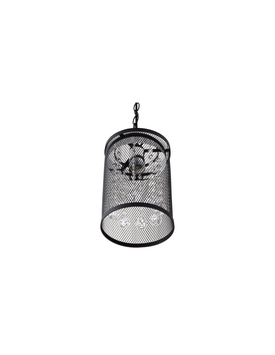 Colgante serie Davy de color negro. Está realizado en metal y presenta un diseño muy moderno, inspirado en el arte industrial con un toque neoclásico. El cuerpo del colgante posee una pequeña rejilla que envuelve a unos detalles en cristal que aportan distinción al conjunto. Es ideal para restaurantes, hoteles, tiendas, etc. El portalámparas es E27 y está recomendado para interiores.