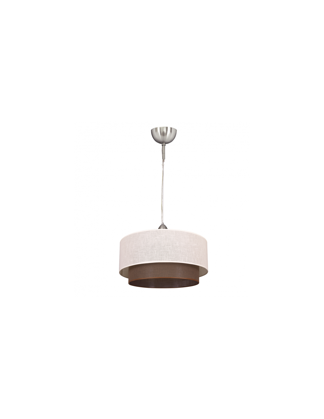 Colgante serie Altea en color beis/marrón. Realizado en material textil, destaca por dos cuerpos concéntricos. Sus dimensiones son, 125X35X35 cm con altura regulable. Puede combinarlo con el sobremesa en el mismo color o buscar un contraste con el modelo en beis marrón.
