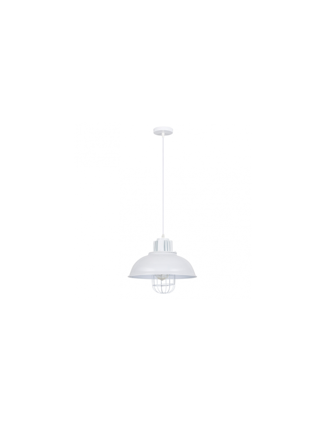 Colgante serie EMU de metal color BLANCO con rejilla protegiendo la bombilla, tipo industrial Retro. Regulable en altura tiene unas medidas 112x33x33 centímetros y un peso neto de 1225 gramos. Trae un portalámpara E27. Bombilla no incluida. Se recomienda completar con bombilla estilo vintage para conservar su estética. Disponible también en color Rústico-Plata, Marrón Óxido y Negro.