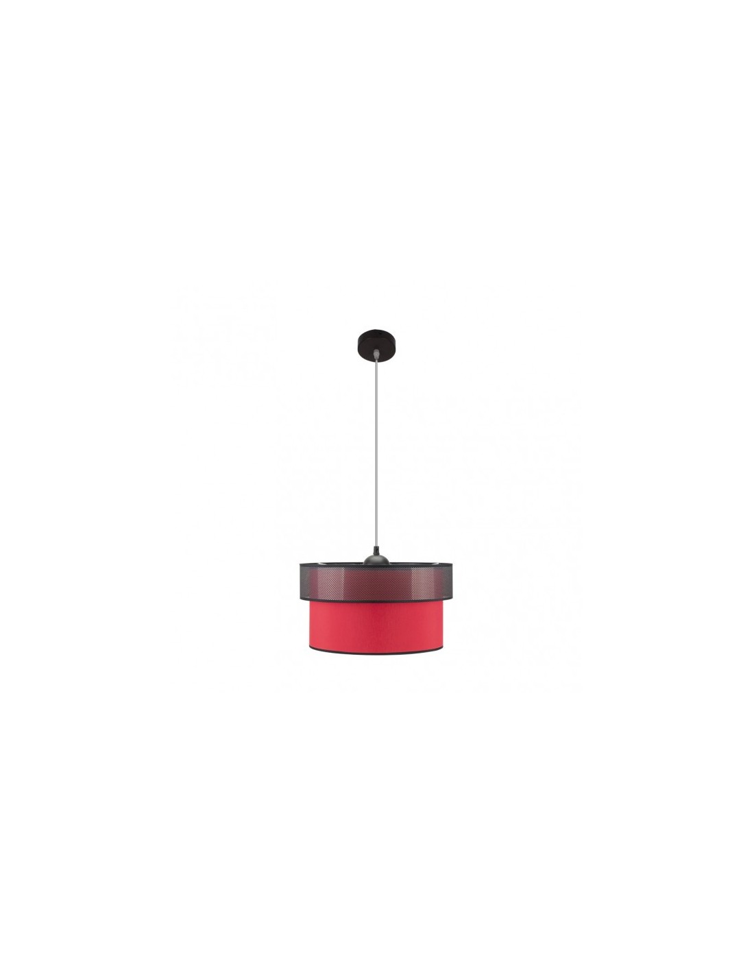 Colgante de la serie FELIX de color NEGRO/ROJO. Realizado en metal y textil, se compone de dos pantallas, una más estrecha de tela de malla negra que corona la pantalla más ancha de color rojo, todo ribeteado en negro, resultando una bonita combinación de texturas y juego de colores. De estilo moderno y sencillo, a la par que elegante y original, ideal tanto para dormitorios, salones y salas de estar abocadas al descanso, como para comedores y lugares de trabajo. Posee un portalámparas E27. Bombilla no incluida. Tiene unas dimensiones, regulables en altura, 148x40x40 centímetros, y un peso neto de 810 gramos. En esta serie podemos encontrar tanto el colgante de 40 centímetros de diámetro como el de 50 centímetros de diámetro, disponibles ambas medidas en negro/blanco, negro/rojo y negro/dorado.
