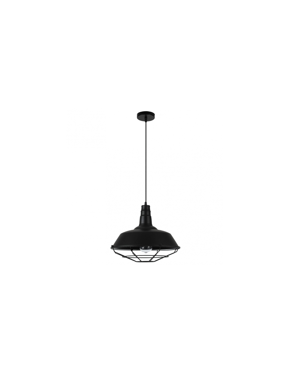 Colgante serie FLAMENCO de metal color NEGRO con rejilla protegiendo la bombilla, de estilo Industrial Retro. Regulable en altura tiene un diámetro de 36 centímetros. Trae un portalámpara E27. Bombilla no incluida. Se recomienda completar con bombilla estilo vintage para conservar su estética. Disponible también en color Marrón Óxido y Rústico/Plata.