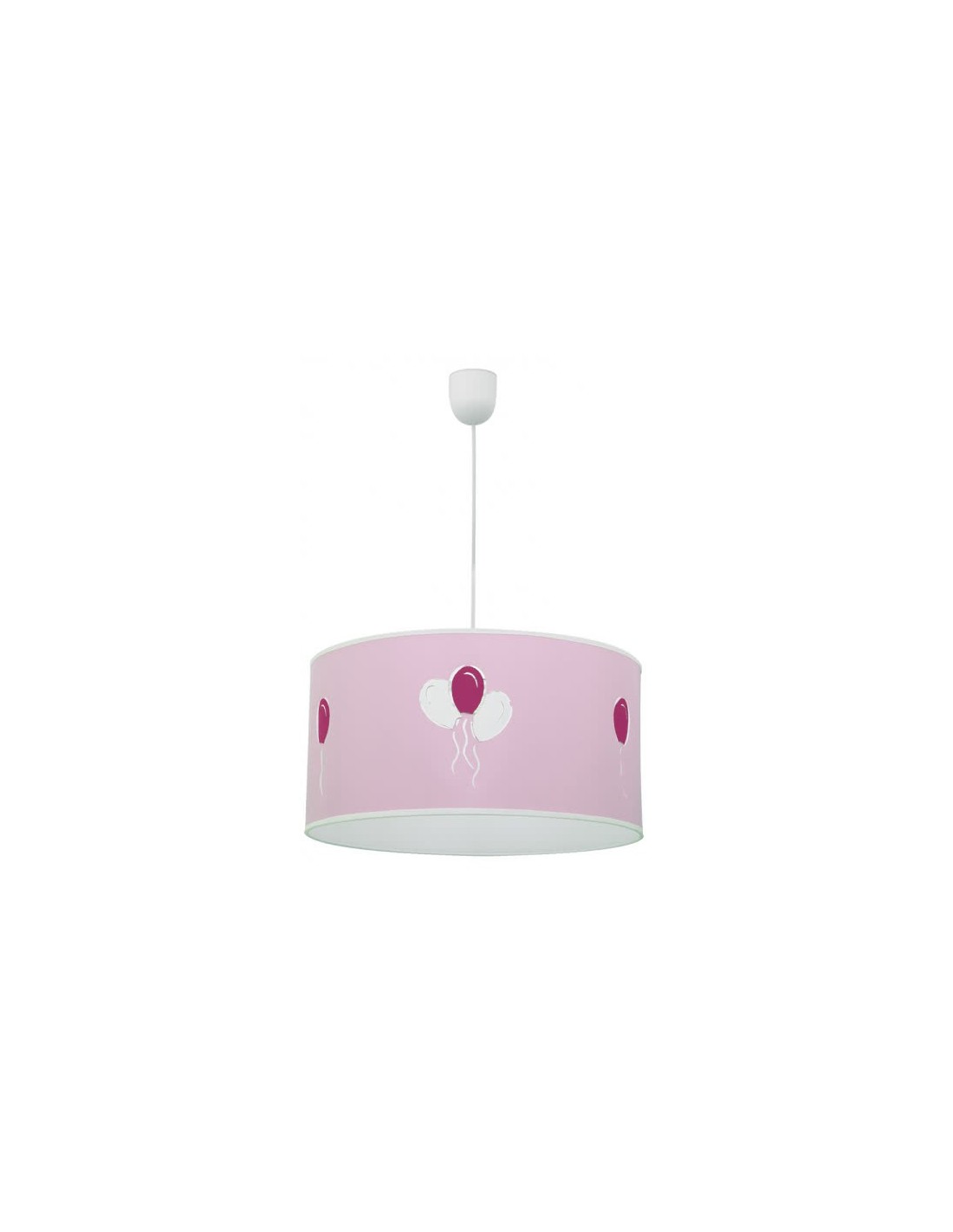 Simpática lámpara de techo serie GLOBITOS, con pantalla textil de color rosa decorada con globos. Ajustable en longitud desde 30 hasta 73 centímetros de máximo. Su ancho es de 35 centímetros y tiene un peso neto de 350 gramos. Portalámparas E27.