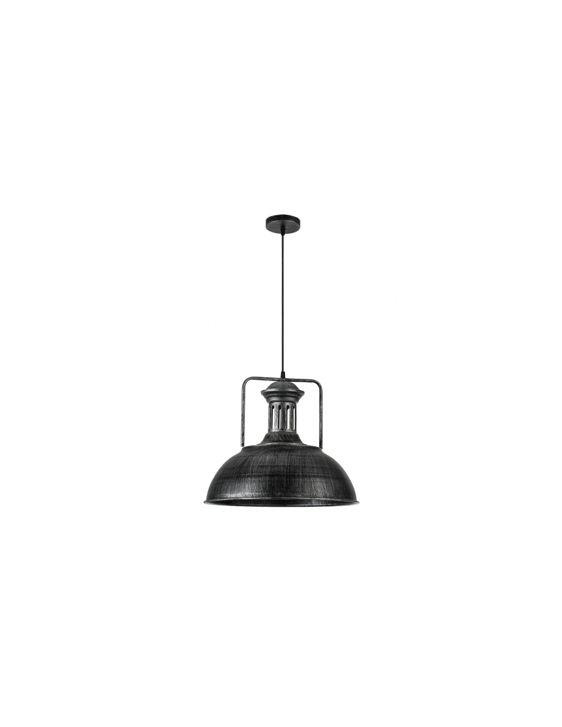 Colgante serie LORO de metal color RUSTICO-PLATA campana tipo industrial Retro. Regulable en altura tiene unas medidas 120X41X41 centímetros y un peso neto de 1440 gramos. Trae un portalámpara E27. Bombilla no incluida. Se recomienda completar con bombilla estilo vintage para conservar su estética. Disponible también en color Rústico y Negro.