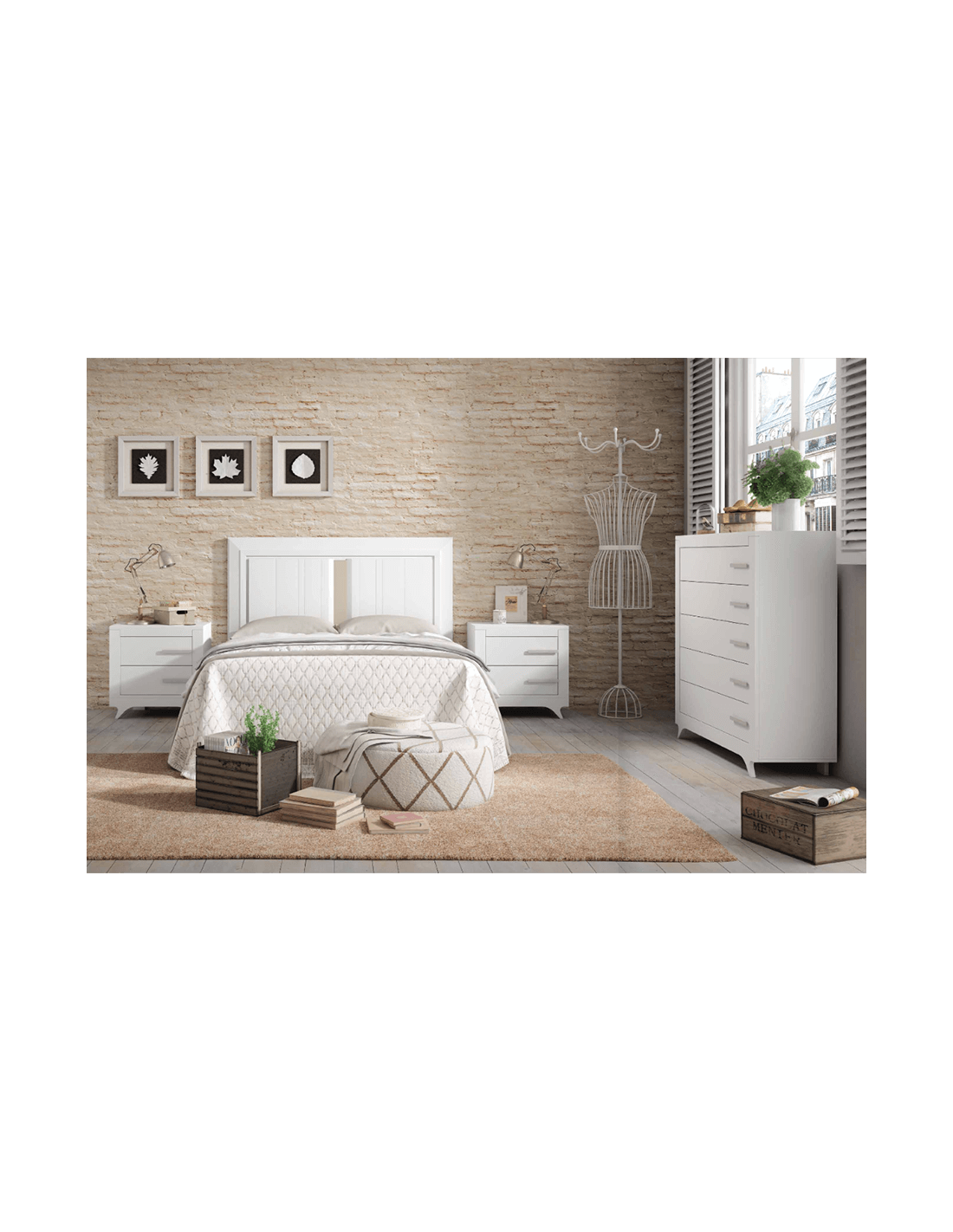 Composicion de dormitorio sin armario con tirador lineal en madera color blanco