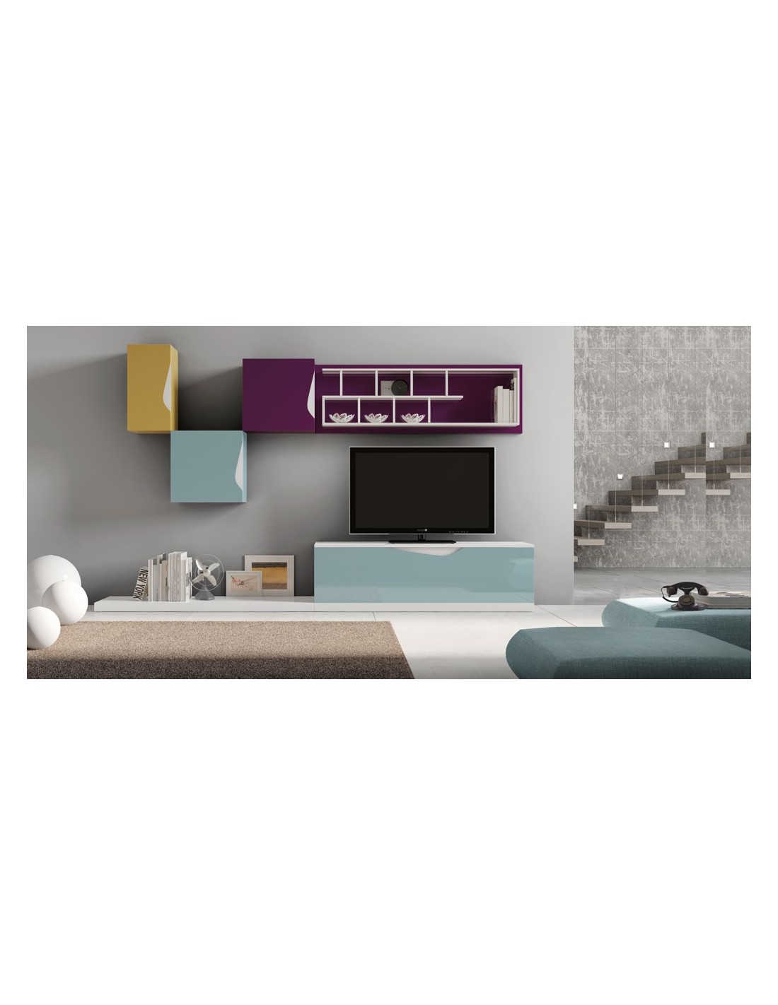 Composicion de salon completa modular diferentes colores lacados o tono madera a medida (7)