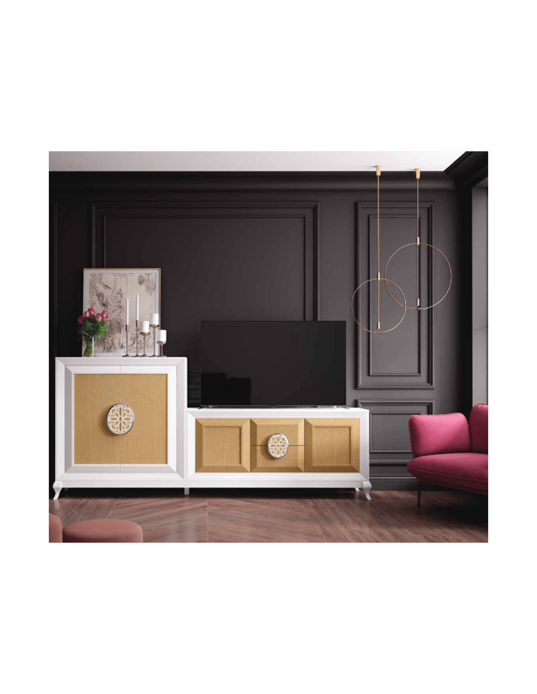 Realizamos diseño en 3D para que vea con todo lujo de detalles como le quedará su salón o aparador ya montado, y podrá hacer cambios de color en el dibujo 3D para ver que combinación de colores le gusta más.