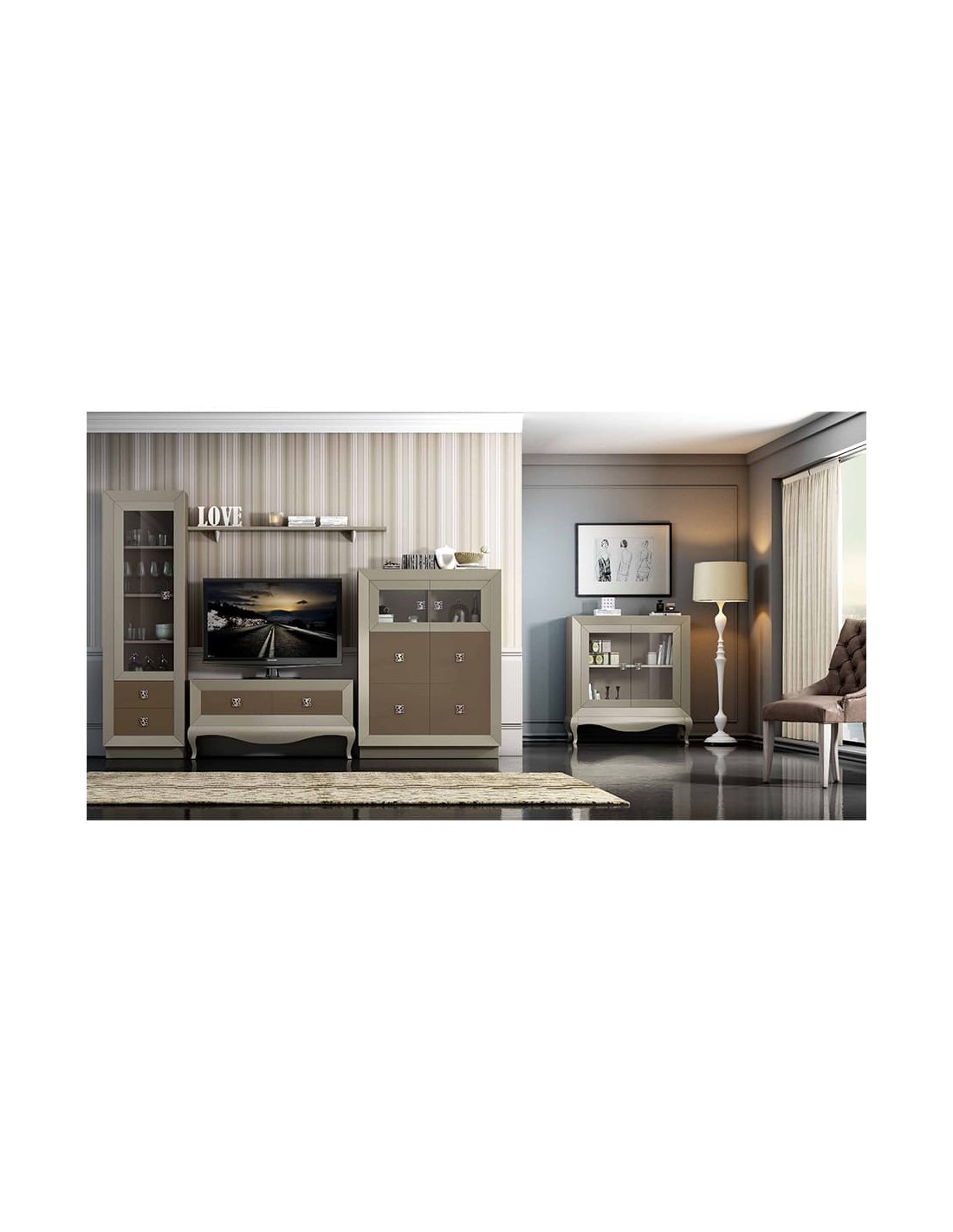 Composicion de salon modular estilo romantico con bancada isabelina