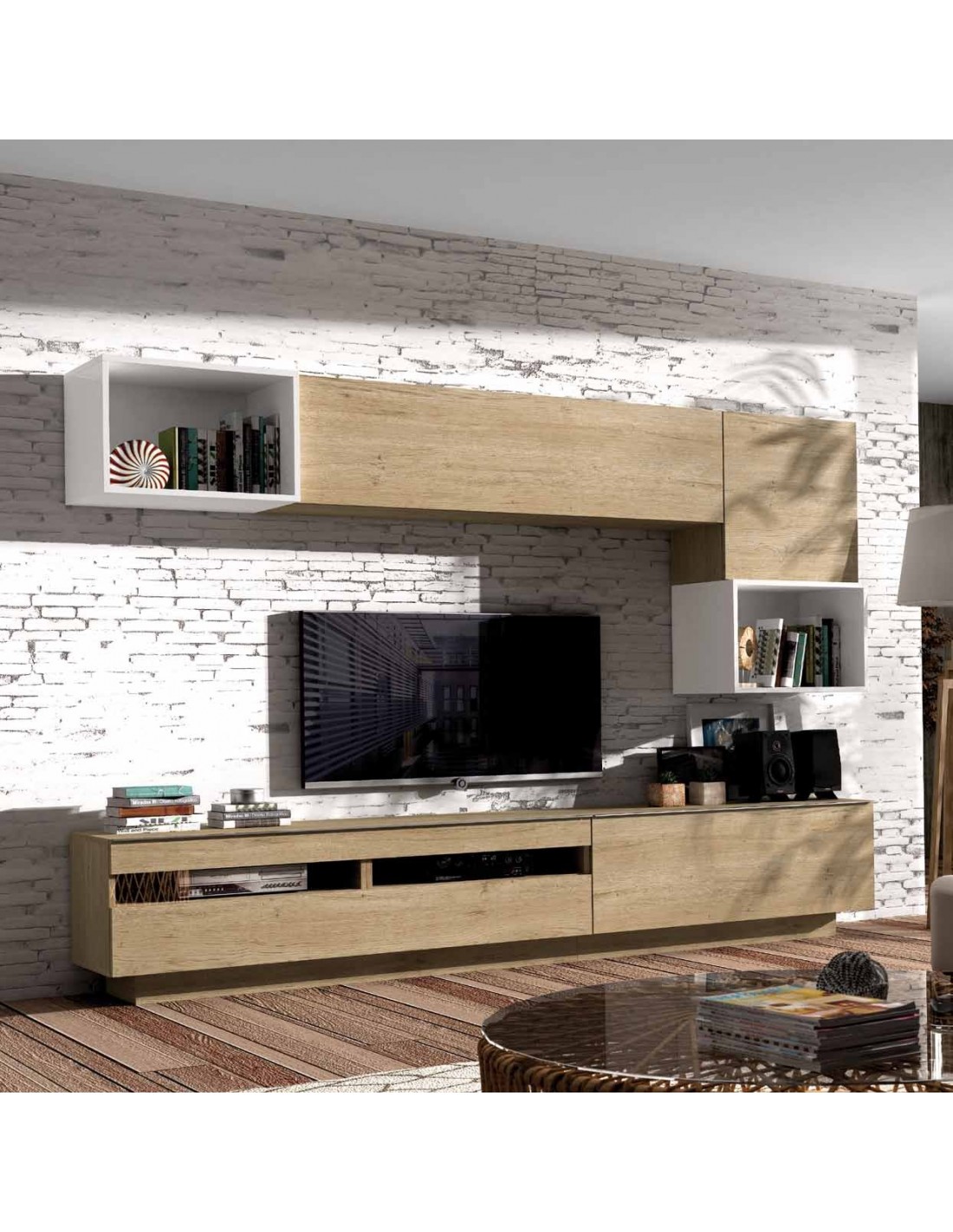 Composicion modular de salon moderna con vitrinas muebles colgados a diseño (100)