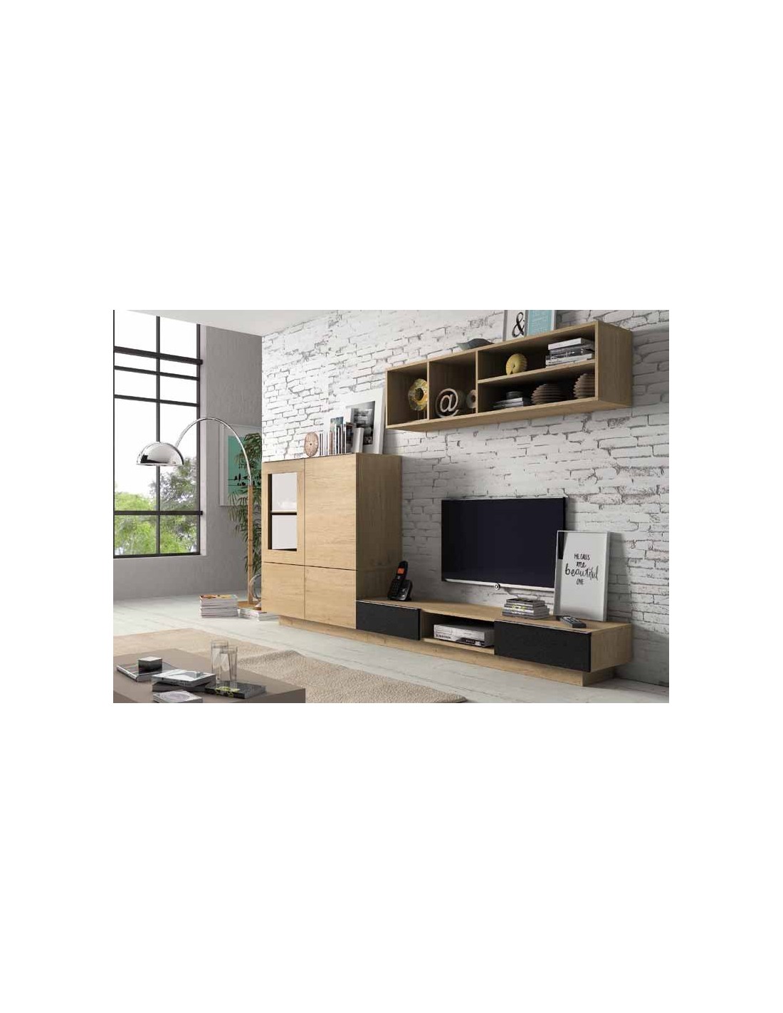 Composicion modular de salon moderna con vitrinas muebles colgados a diseño (115)